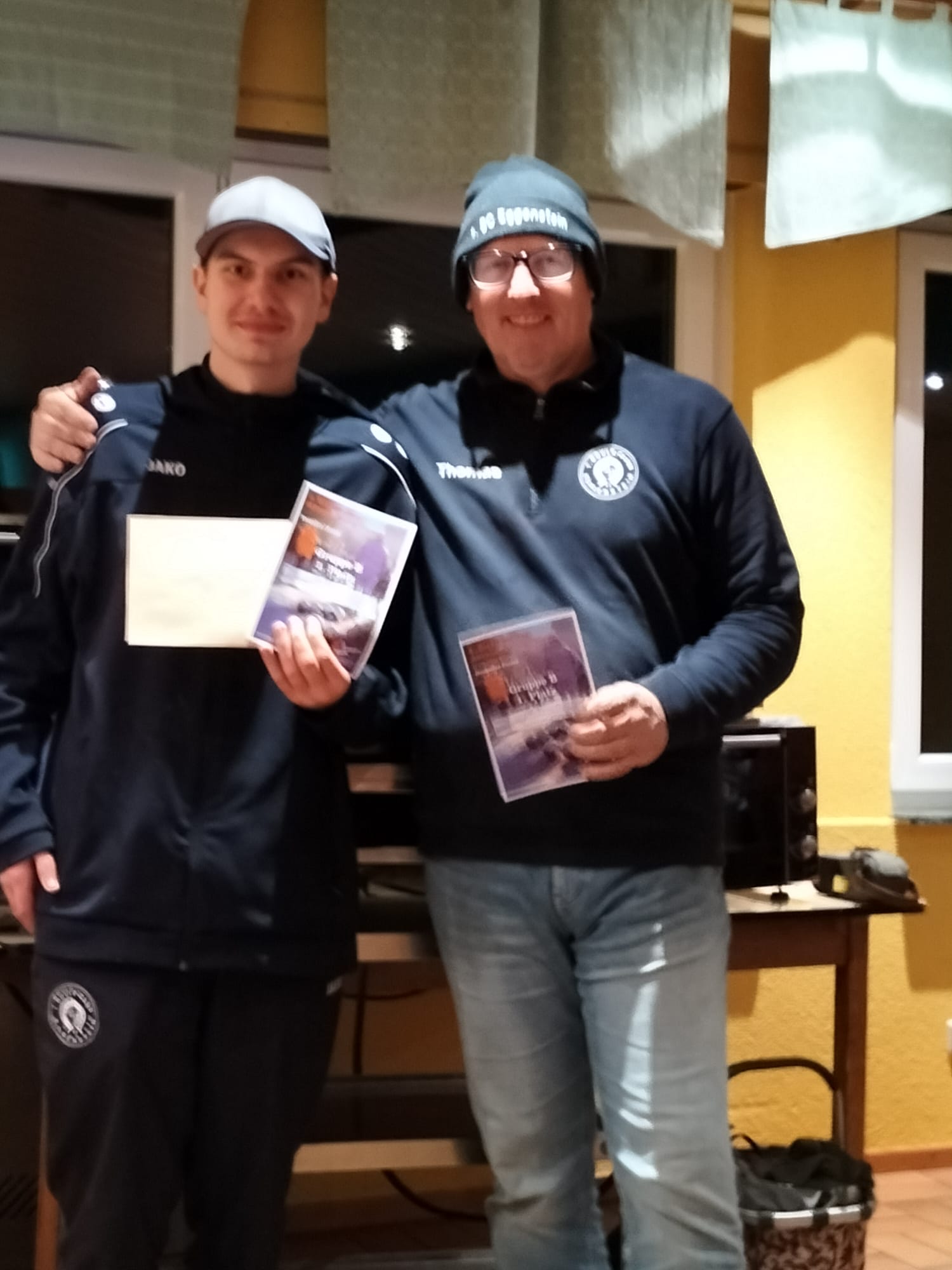 Heute haben 3 Eggensteiner Teams beim TUS Bietigheim das Adventsturnier gespielt. Nach 4 Runden Schweizer System standen Annette und Bernd auf dem 10 Platz. Anita und Günther gleich dahinter auf der 11. Justin und Thomas standen auf dem 6 Platz und durften im B-Turnier die Finalrunde spielen. Nach einem deutlichen Sieg im HF, wurde es im Finale doch etwas spannender. Mit einem Schuß für Schluss beendete Thomas das Spiel und die beiden gewannen das B-Turnier.