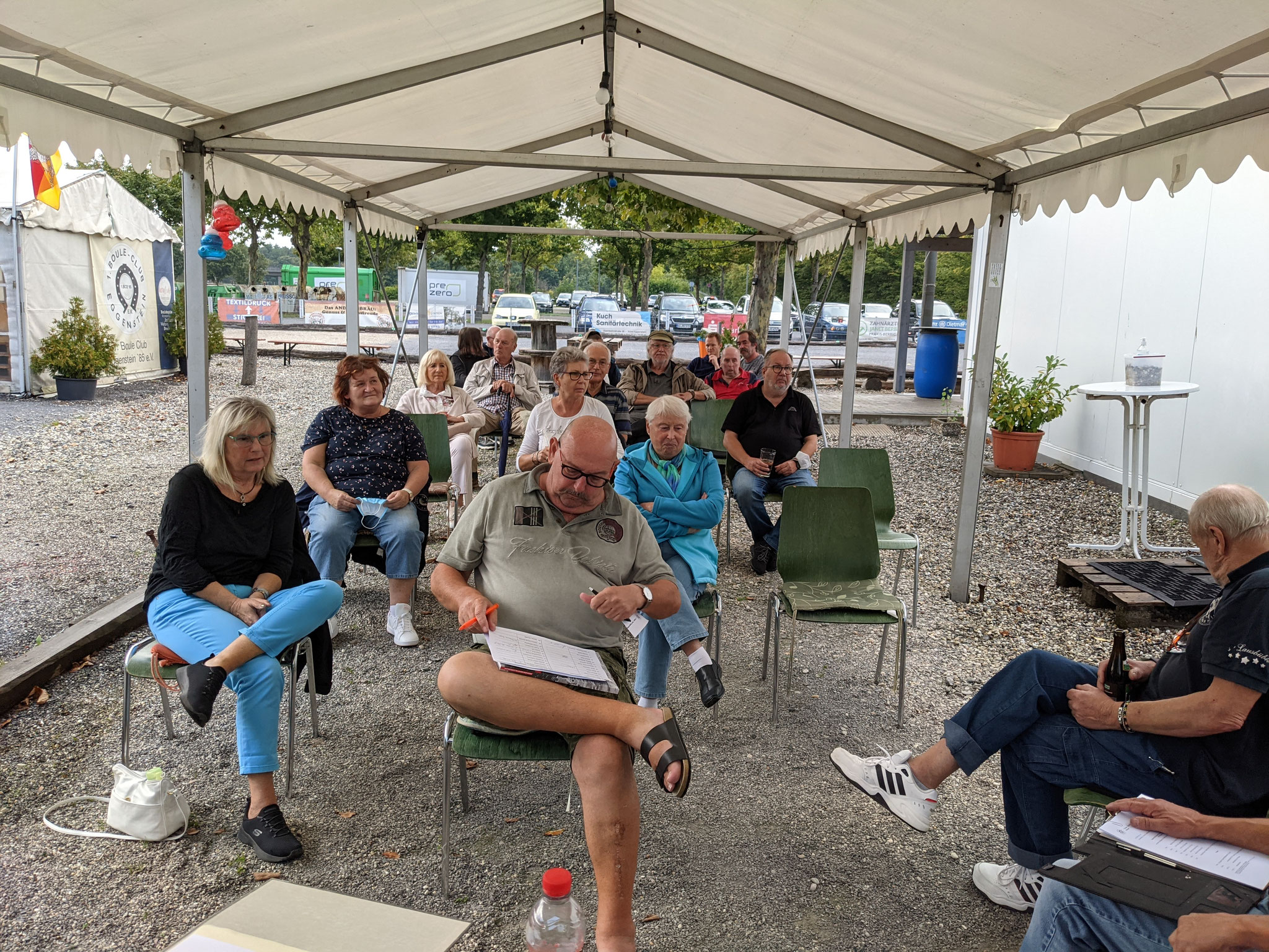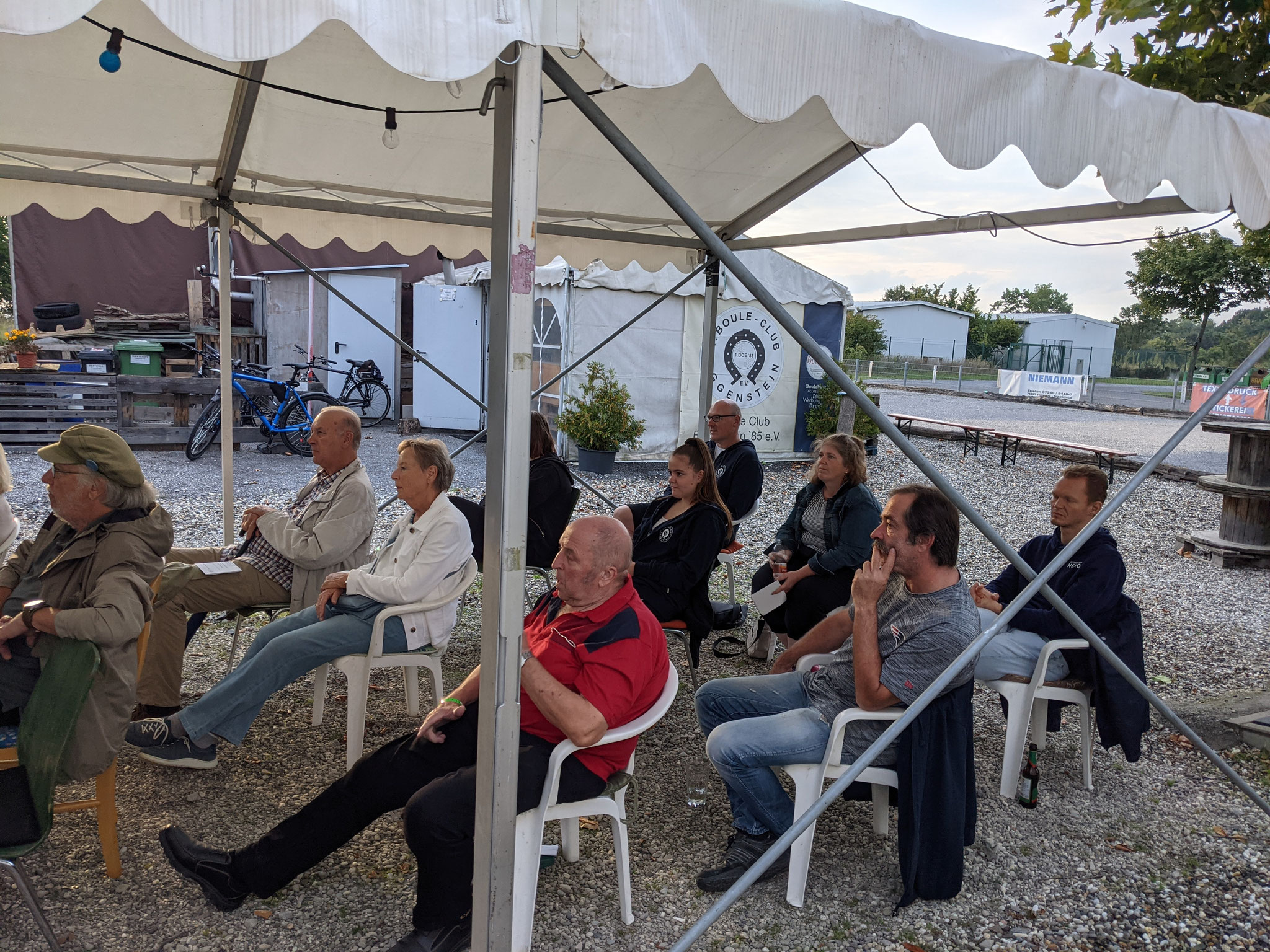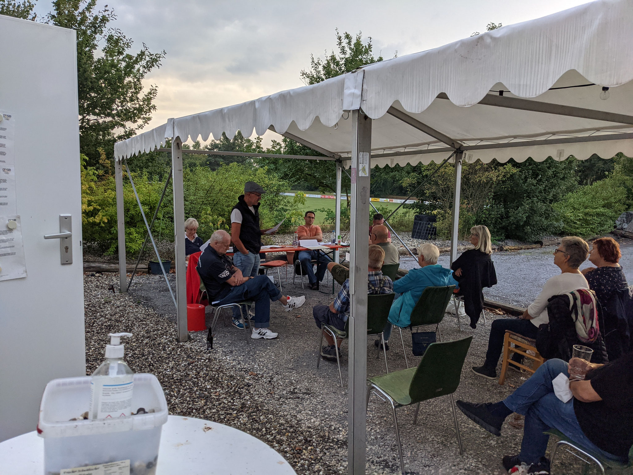Am 10.09.21 fand die Hauptversammlung des Boule Clubs statt. Corona bedingt trafen sich 25 Mitglieder im Freien auf dem Boulegelände. Der 1. Vorstand Marco Krämer berichtete von vielen Absagen und Ausfällen von Veranstaltungen und Turnieren die der Pandemie geschuldet waren. Man war aber froh, dass man immer mal wieder mit Auflagen spielen konnte. Marco K. bedankte sich bei allen Mitgliedern für die tolle Zusammenarbeit und den Zusammenhalt in diesen ungewöhnlichen Zeiten. Siggi Dannenmeier Bericht über den Sportbereich und Anna Fucecs Bericht über unsere Jugend waren den Umständen entsprechend etwas kürzer. Schön ist, dass wir 2020 wieder eine neue Jugendliche ( Lara Steidel )gewinnen konnten. Nach einer kurzen Pause ehrte der 1. Vorstand Jürgen Schraijer für seine langjährige Tätigkeit im Trainerwesen beim Deutschen und Baden-Württembergischen Petanque Verband. Dafür bekam er die Ehrennadel in Silber des BBPV Verliehen. Evi Friton wurde für ihre 25-jährige Mitgliedschaft geehrt.