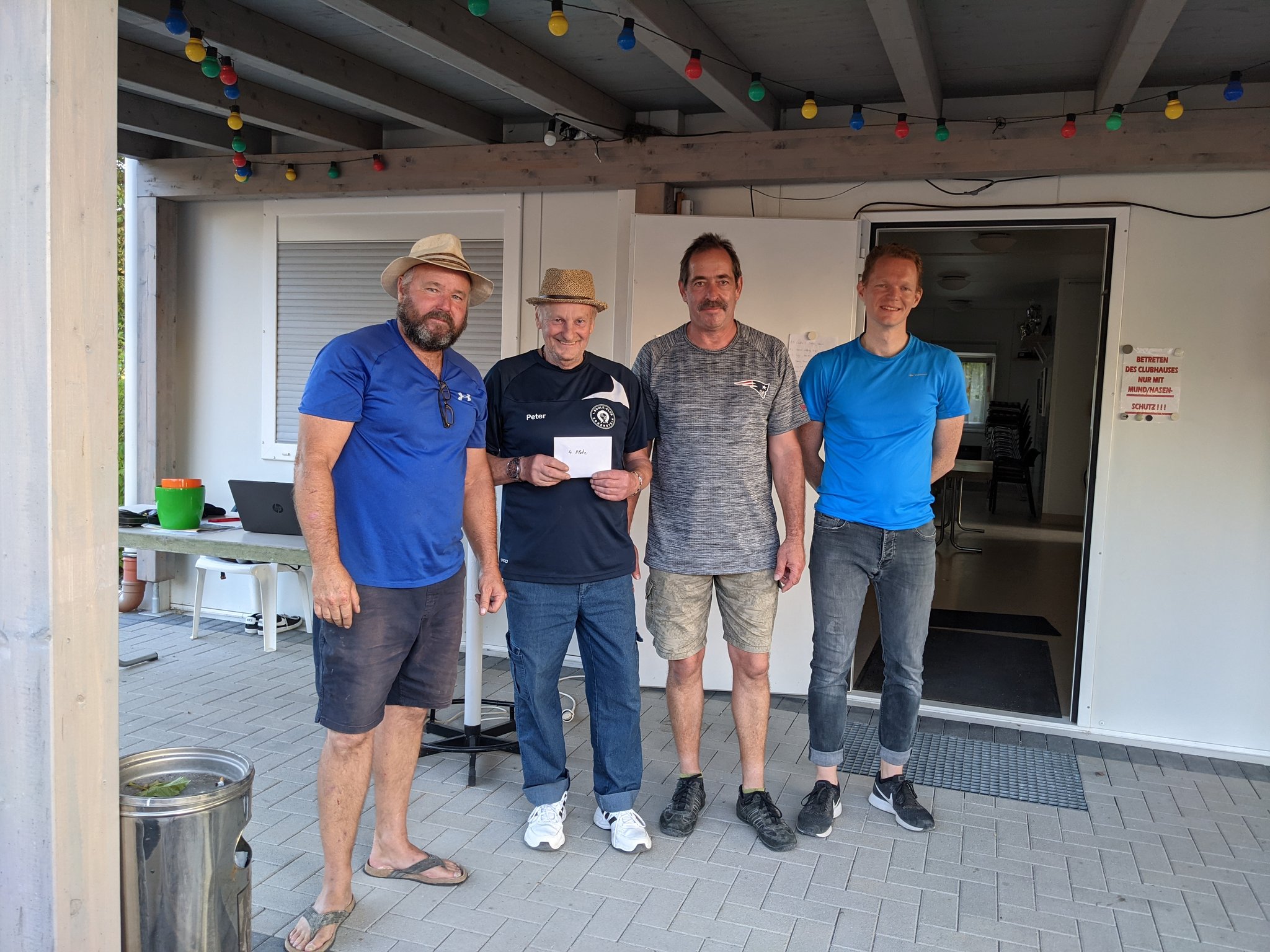 Endlich, nach Corona bedingter Zwangspause, konnte am 18.09.21 das Finale der Winterturnierserie 2019-2020 durchgeführt werden. Die 24 Bestplatzierten der Serie trafen sich auf dem Boulodrome, um die Gesamtsieger zu ermitteln. Nach der Auslosung der Tripletten, begann auch gleich der rege Spielbetrieb. Das herrliche Wetter, in Kombination mit der kulinarischen Verköstigung durch Regina und Anita, ließen keine Wünsche offen. In teils hochklassigen, mitunter dramatischen Spielen, wurde um jeden Punkt leidenschaftlich gekämpft. Nicht immer ging die favorisierte Mannschaft als Sieger vom Platz. Teilnehmer aus Brühl, Malsch, Wiesloch,Ubstadt und Pfinztal zeugen von der Qualität unseres Winterturniers. Nicht alle Kugeljongleure kamen mit dem schwierigen Terrain auf unserem Boule Gelände zurecht und so landete manch gespielte Kugel weit jenseits der anvisierten Zielkugel. Unter Beobachtung zahlreicher Zuschauer konnte sich am Ende das Trio Iris Koch, Jürgen König, sowie Routinier Marco Marggrander durchsetzen und den Sieg erringen. Herzlichen Glückwunsch.