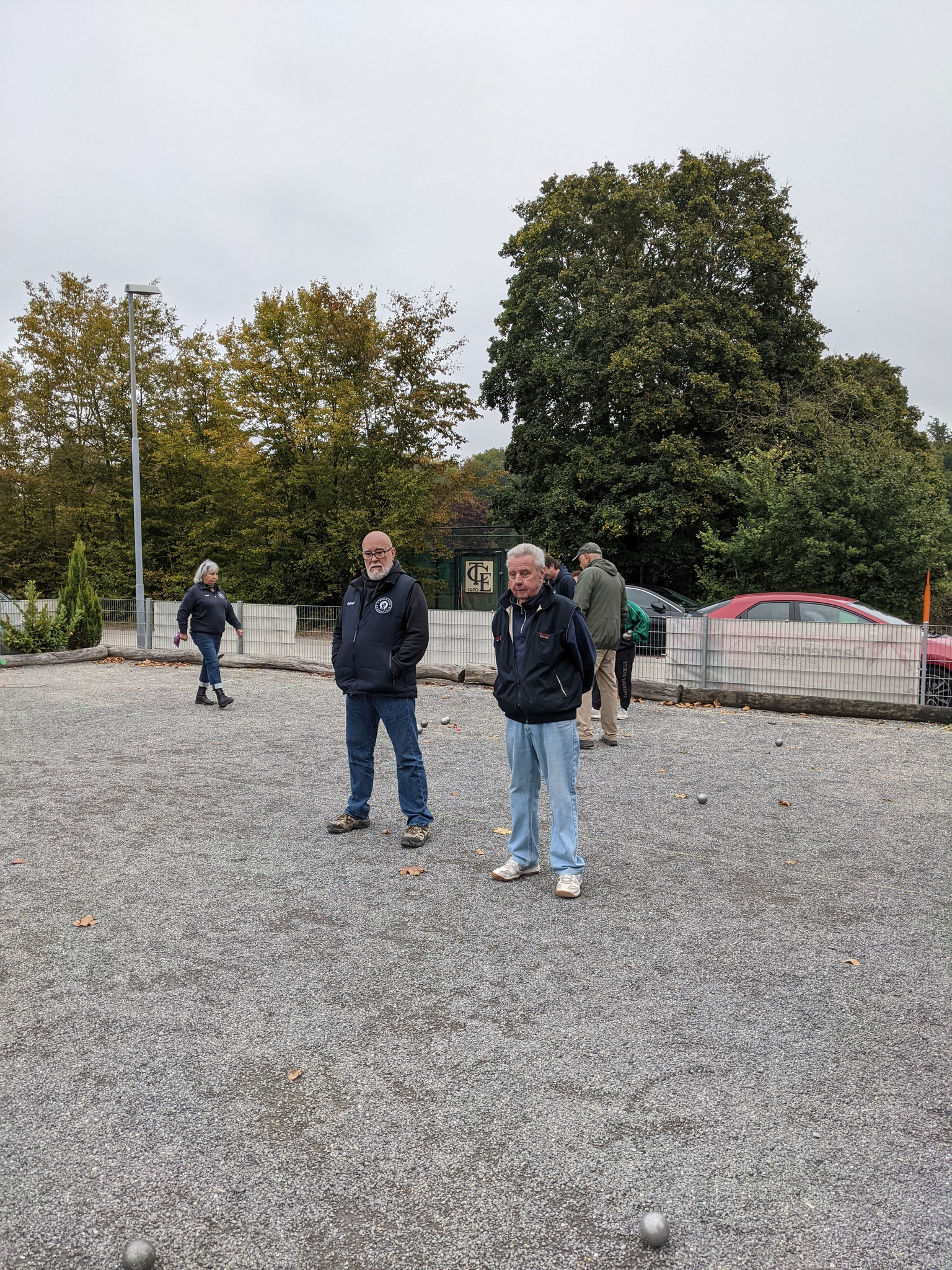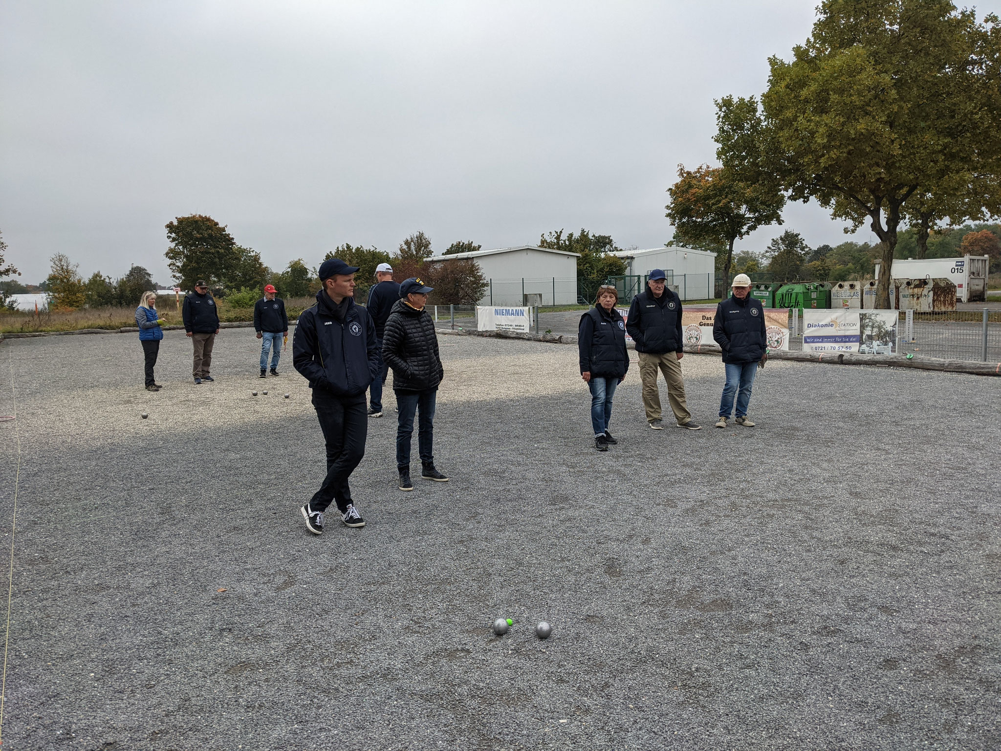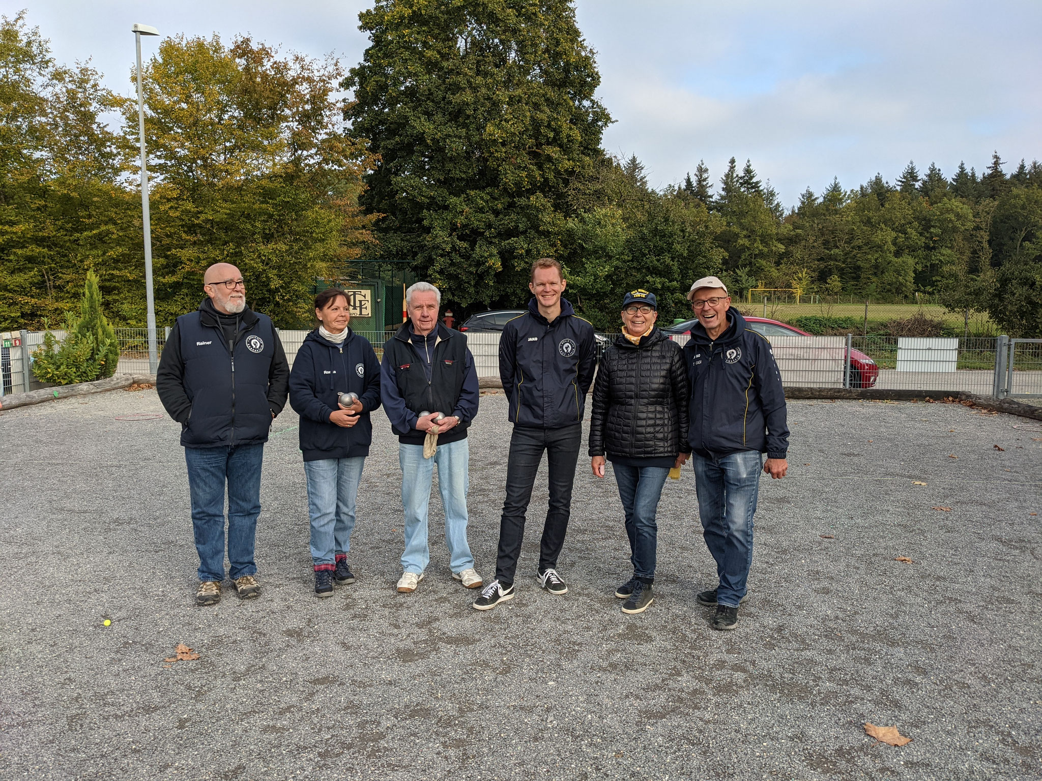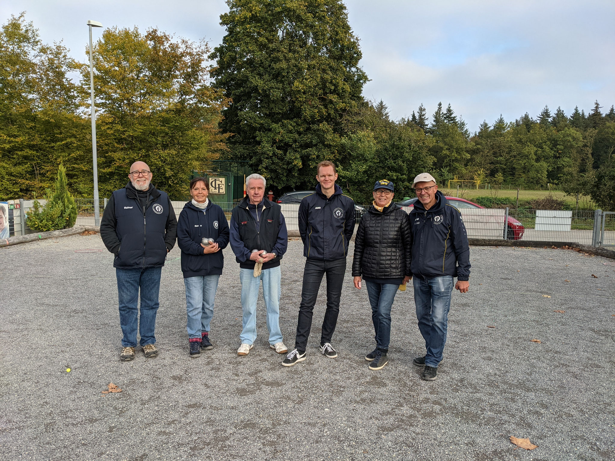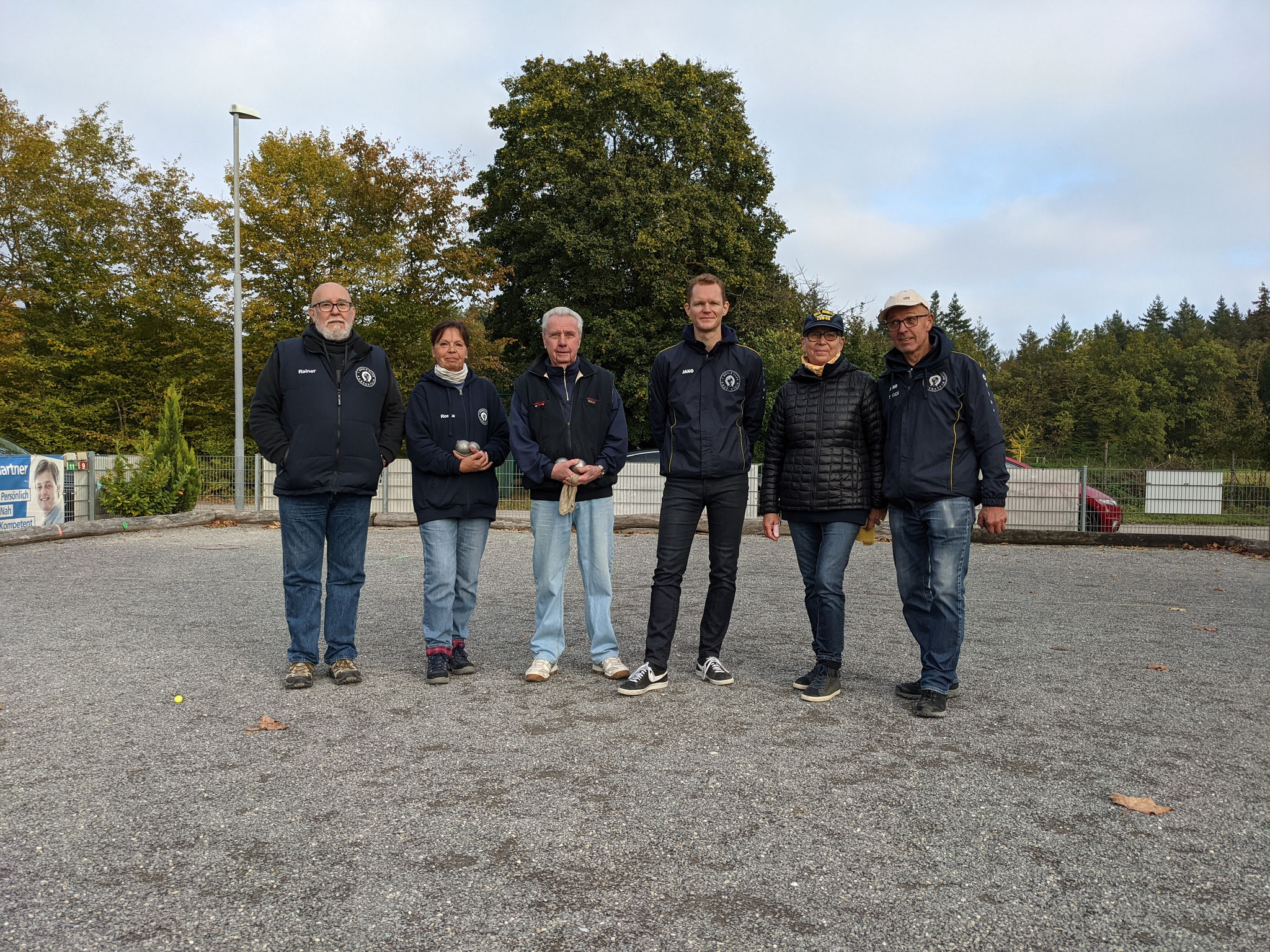 Am Samstag den 16.10. trafen wir uns um die diesjährige Vereinsmeisterschaft im Triplette Mixte auszuspielen. Angetreten waren 8 Mannschaften gemixt mit Damen und Herren. Die Turnierleitung mit Stephan B. loste 2 Gruppen mit je 4 Mannschaften und jeder spielte gegen jeden. Nach der ersten Runde wurde eine Pause eingelegt zur Stärkung von Körper und Geist. Danach wurden die Restlichen 2 Runden gespielt. Die ersten 2 einer Gruppe spielten danach über Kreuz um die Teilnahme zum Finale. Die erste Begegnung waren Rosita N. Rainer S. und Rolf B. gegen Walli und Heinz B. mit Rainer R. Das Spiel endete 13:6 für das Team Rosita. Die zweite Begegnung waren Johanna und Siggi D. mit Stephan B. gegen Franc G. Barbara K. und Thomas H. Diese Begegnung wurde vom Team um Johanna D. ebenfalls mit 13:6 gewonnen. Im Finale lief es dann für das Team mit Rosita N. etwas besser und dürfen sich nun Vereinsmeister Triplette mixte nennen. Einen besonderen Dank an die Turnierleitung für die Durchführung des Turniers an alle Salat und Essen und Kuchenspender sowie dem gesamten Küchenteam welches zum Gelingen dieses wunderschönen Tages beigetragen haben.