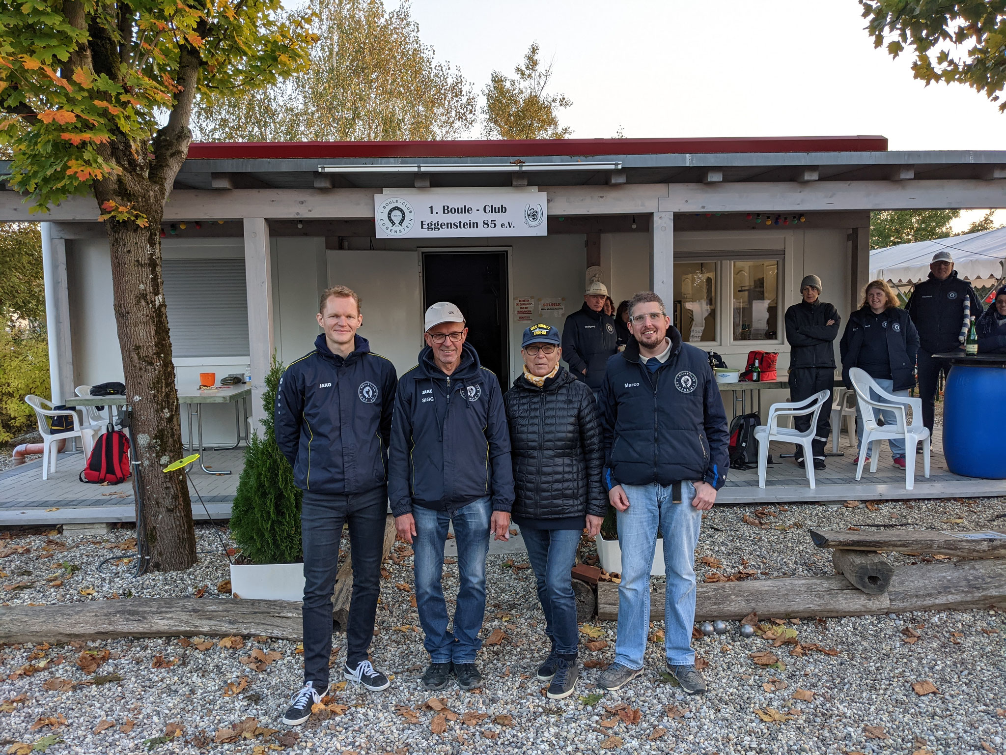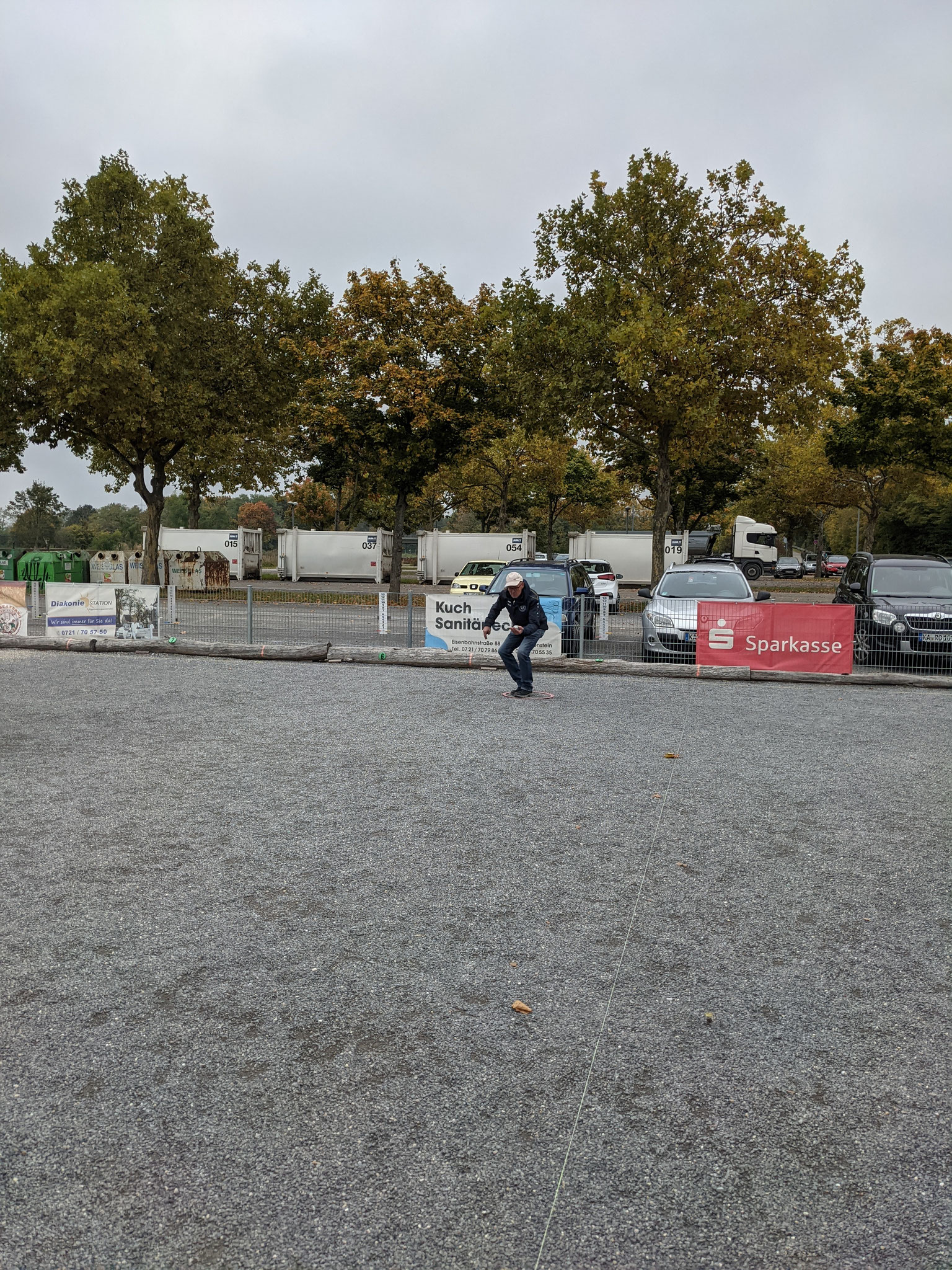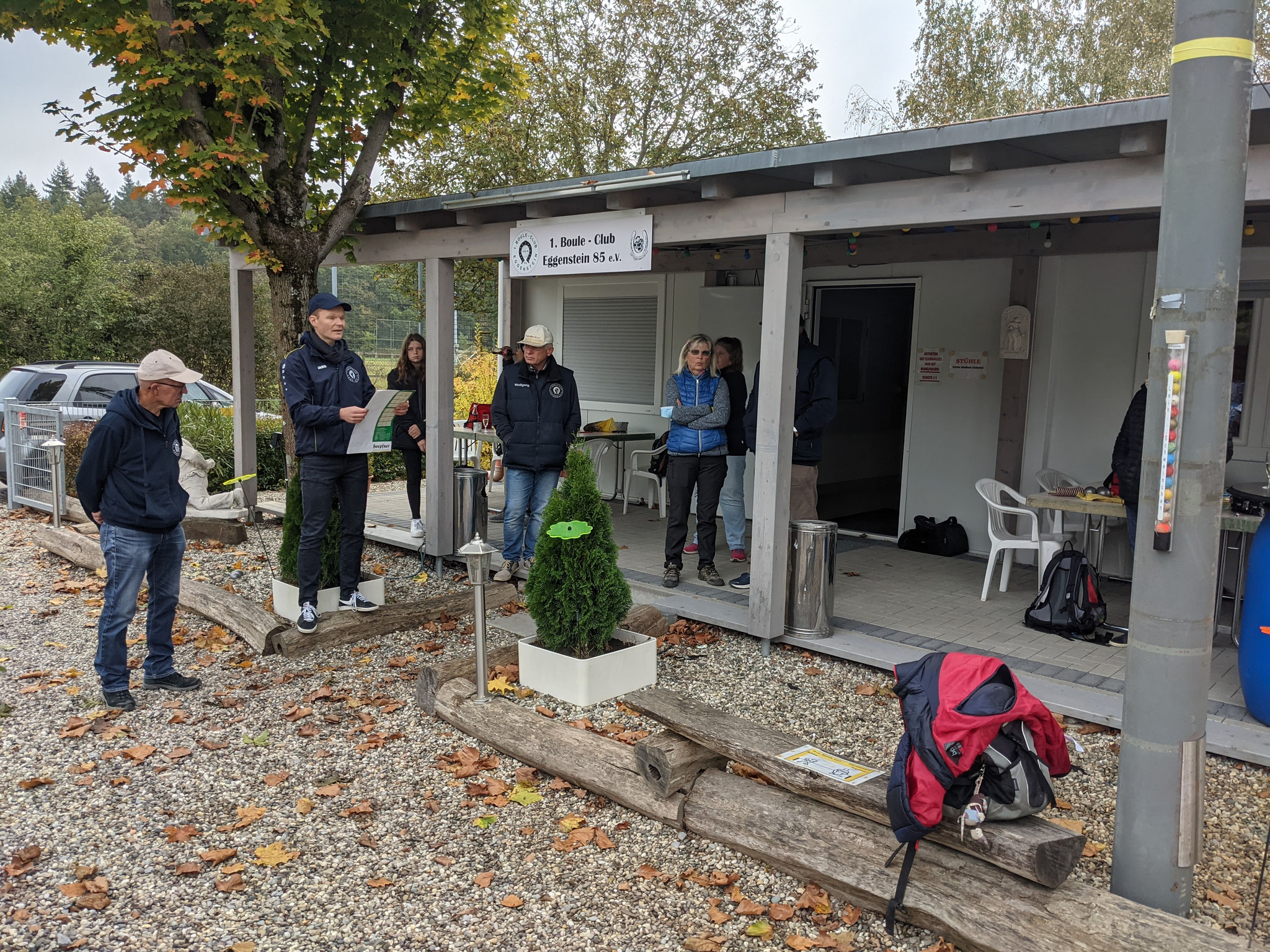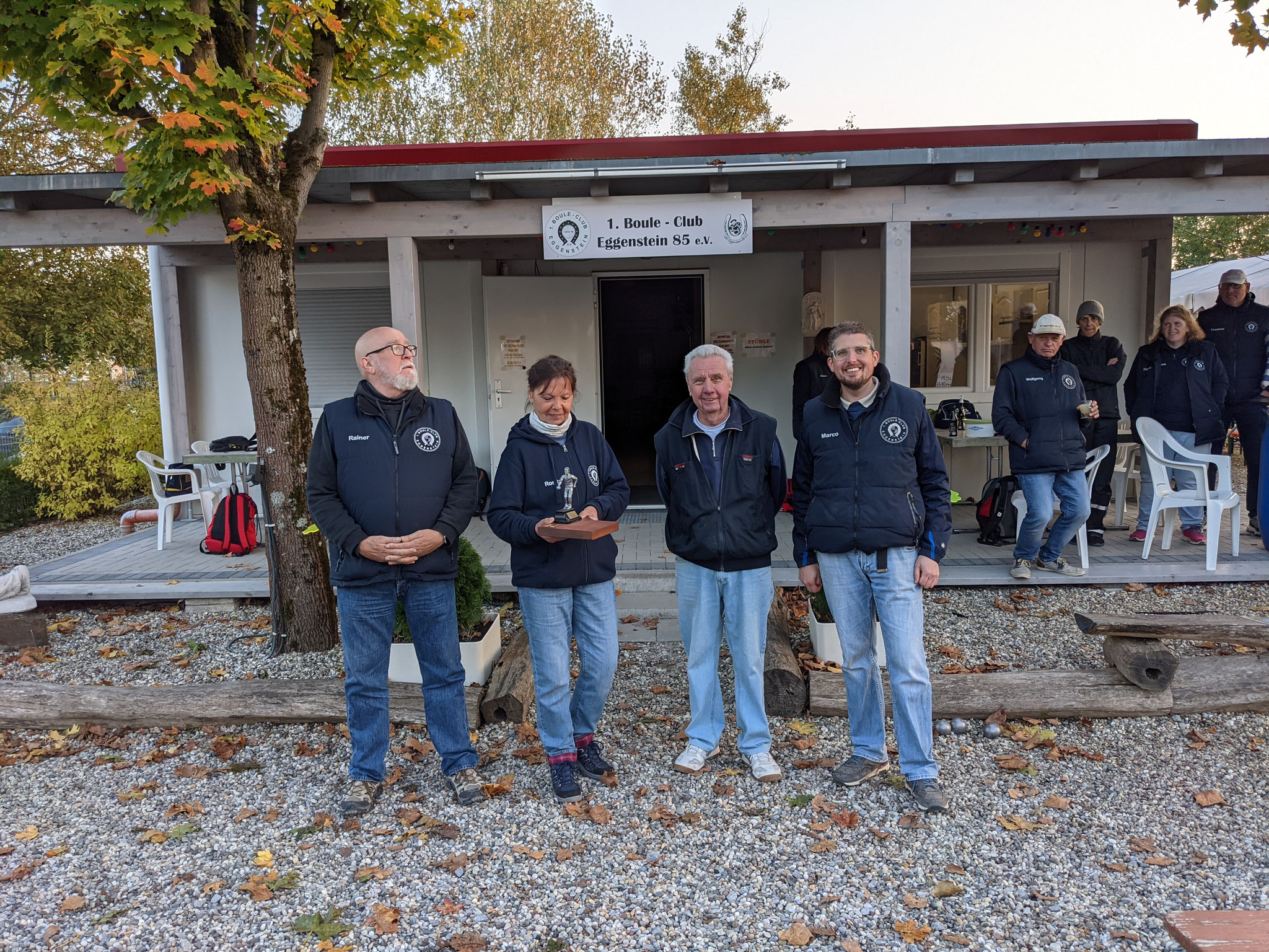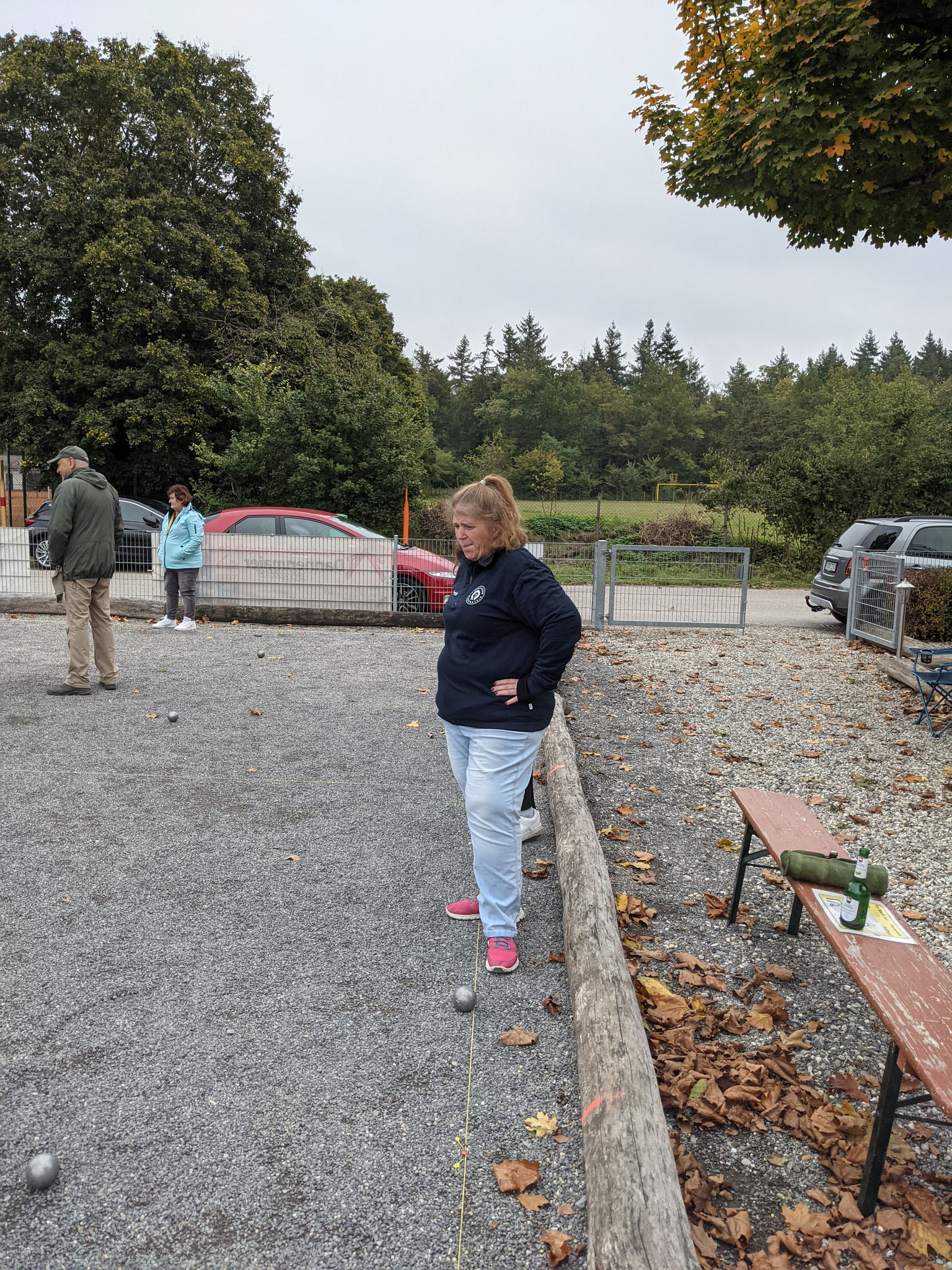 Am Samstag den 16.10. trafen wir uns um die diesjährige Vereinsmeisterschaft im Triplette Mixte auszuspielen. Angetreten waren 8 Mannschaften gemixt mit Damen und Herren. Die Turnierleitung mit Stephan B. loste 2 Gruppen mit je 4 Mannschaften und jeder spielte gegen jeden. Nach der ersten Runde wurde eine Pause eingelegt zur Stärkung von Körper und Geist. Danach wurden die Restlichen 2 Runden gespielt. Die ersten 2 einer Gruppe spielten danach über Kreuz um die Teilnahme zum Finale. Die erste Begegnung waren Rosita N. Rainer S. und Rolf B. gegen Walli und Heinz B. mit Rainer R. Das Spiel endete 13:6 für das Team Rosita. Die zweite Begegnung waren Johanna und Siggi D. mit Stephan B. gegen Franc G. Barbara K. und Thomas H. Diese Begegnung wurde vom Team um Johanna D. ebenfalls mit 13:6 gewonnen. Im Finale lief es dann für das Team mit Rosita N. etwas besser und dürfen sich nun Vereinsmeister Triplette mixte nennen. Einen besonderen Dank an die Turnierleitung für die Durchführung des Turniers an alle Salat und Essen und Kuchenspender sowie dem gesamten Küchenteam welches zum Gelingen dieses wunderschönen Tages beigetragen haben.
