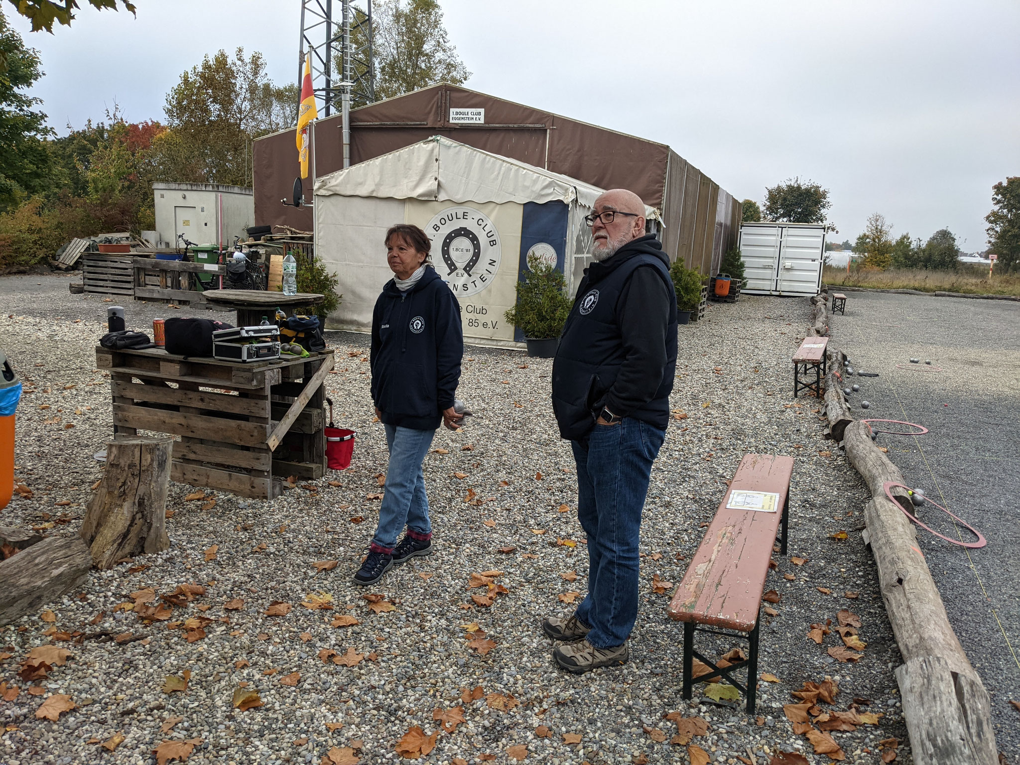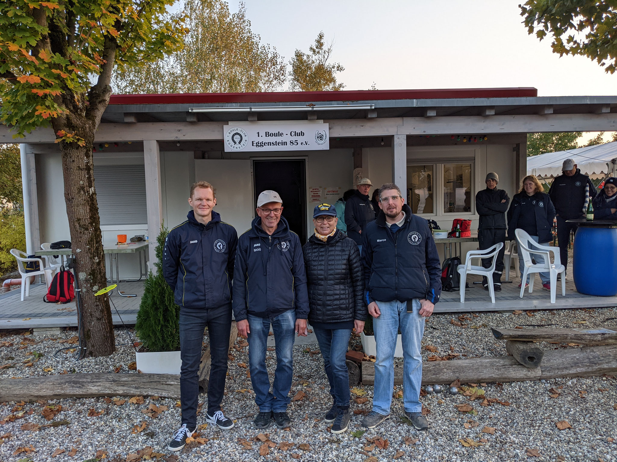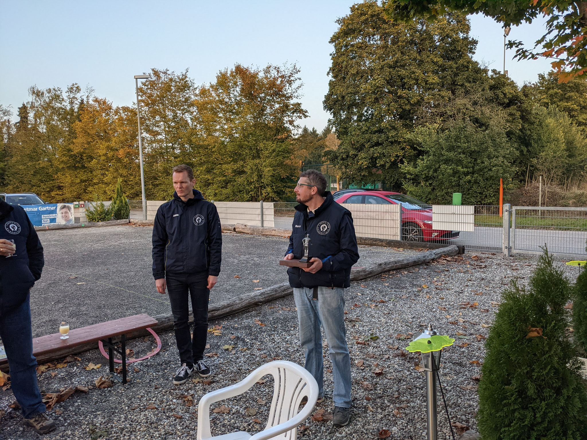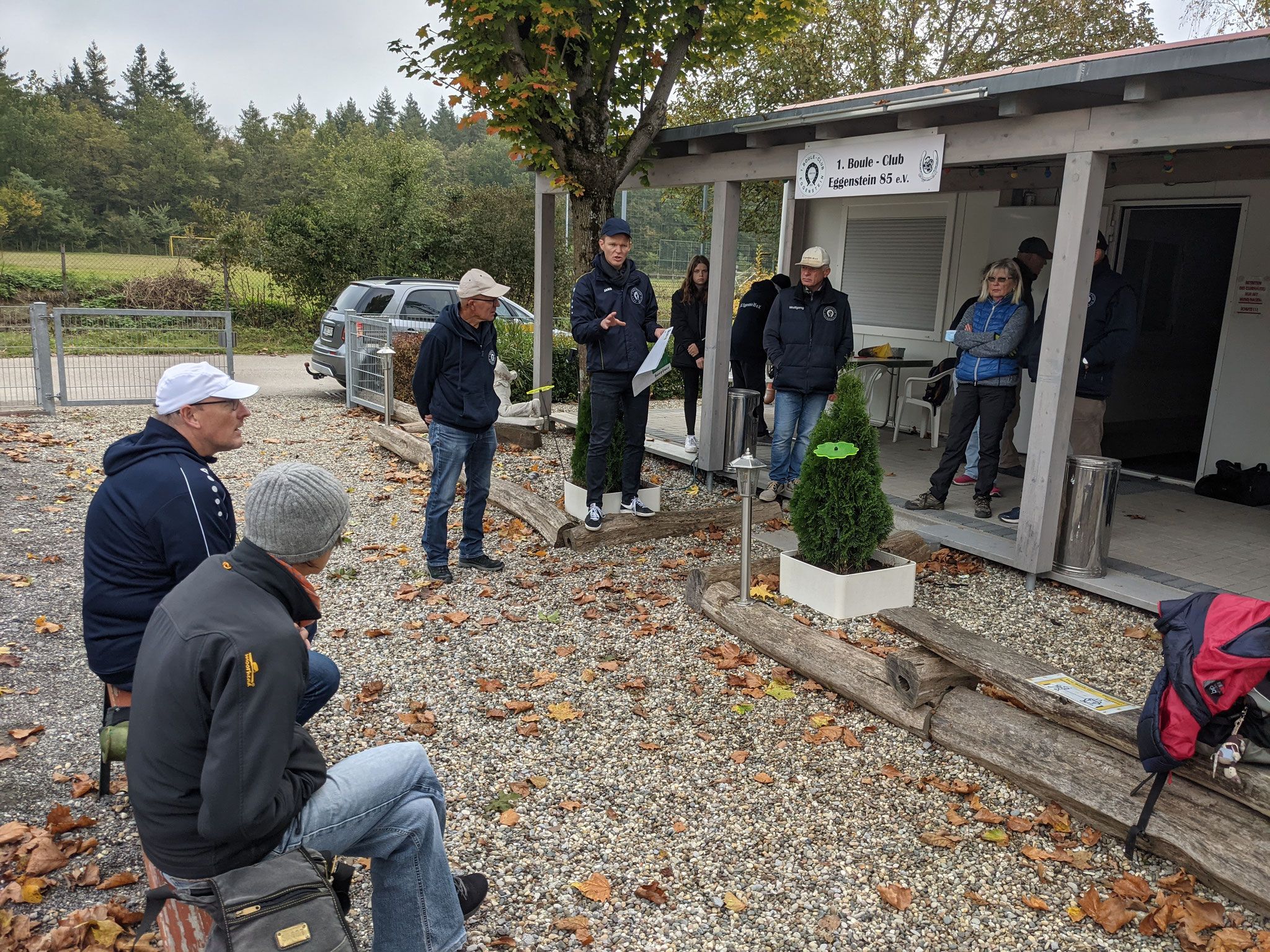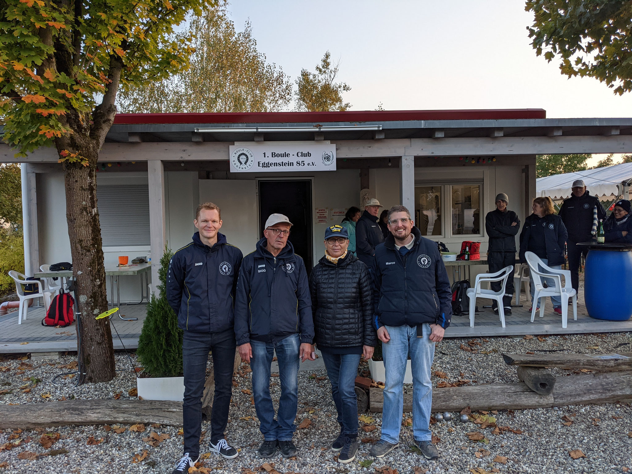 Am Samstag den 16.10. trafen wir uns um die diesjährige Vereinsmeisterschaft im Triplette Mixte auszuspielen. Angetreten waren 8 Mannschaften gemixt mit Damen und Herren. Die Turnierleitung mit Stephan B. loste 2 Gruppen mit je 4 Mannschaften und jeder spielte gegen jeden. Nach der ersten Runde wurde eine Pause eingelegt zur Stärkung von Körper und Geist. Danach wurden die Restlichen 2 Runden gespielt. Die ersten 2 einer Gruppe spielten danach über Kreuz um die Teilnahme zum Finale. Die erste Begegnung waren Rosita N. Rainer S. und Rolf B. gegen Walli und Heinz B. mit Rainer R. Das Spiel endete 13:6 für das Team Rosita. Die zweite Begegnung waren Johanna und Siggi D. mit Stephan B. gegen Franc G. Barbara K. und Thomas H. Diese Begegnung wurde vom Team um Johanna D. ebenfalls mit 13:6 gewonnen. Im Finale lief es dann für das Team mit Rosita N. etwas besser und dürfen sich nun Vereinsmeister Triplette mixte nennen. Einen besonderen Dank an die Turnierleitung für die Durchführung des Turniers an alle Salat und Essen und Kuchenspender sowie dem gesamten Küchenteam welches zum Gelingen dieses wunderschönen Tages beigetragen haben.