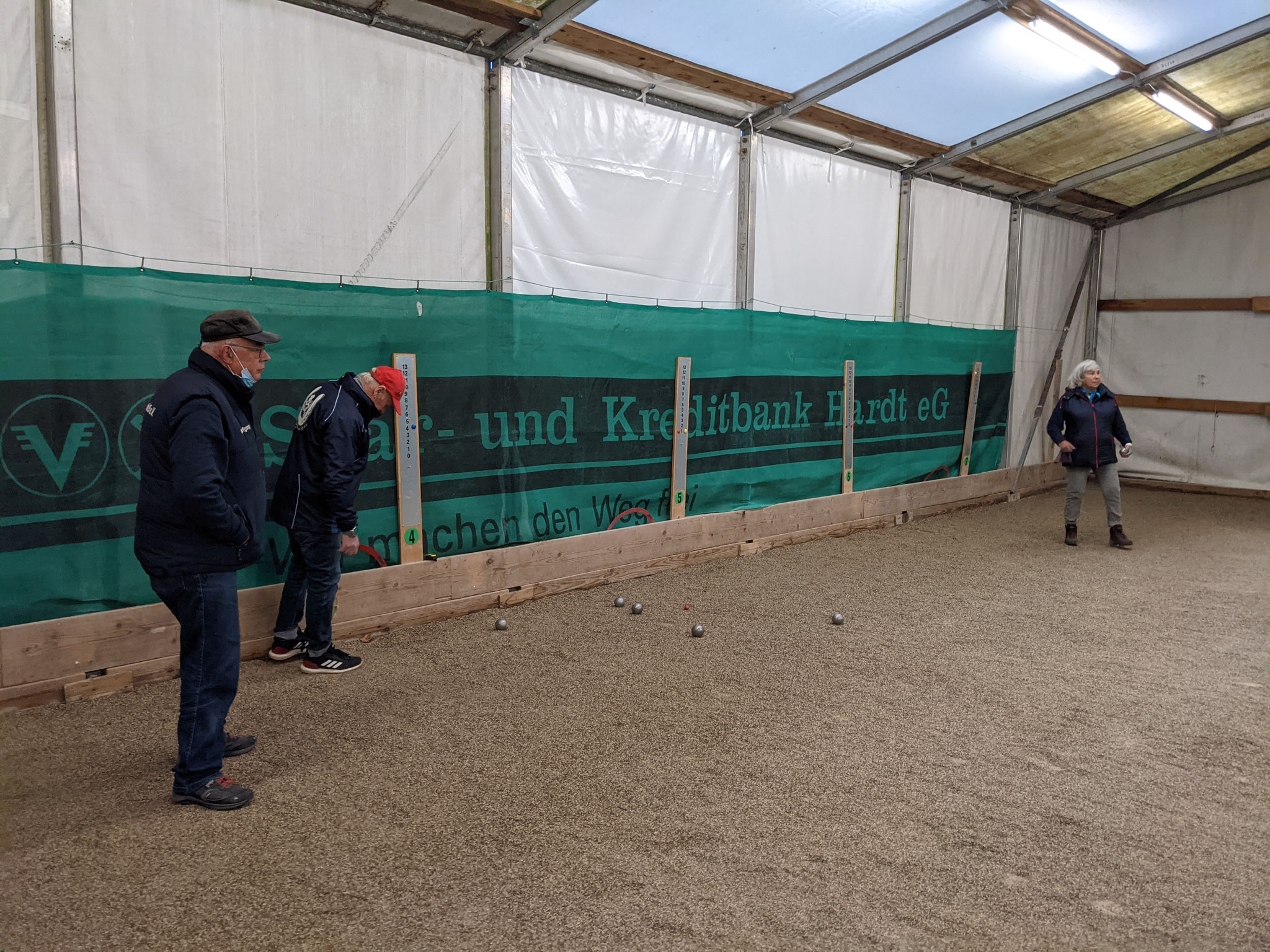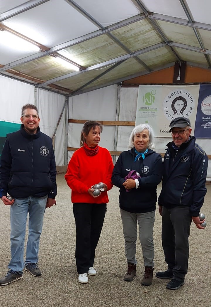 Am Samstag den 30.10.21 fand unser Uhr-Umstell-Turnier statt. Da das Turnier im Modus Doublette "Super Melee" ausgeschrieben war, wurde nach jedem Spiel ein neuer Spielpartner zugelost. Etwas Losglück konnte also nicht schaden. Es entwickelten sich spannende, zum Teil hart umkämpfte Spiele. Nach drei Runden spielten dann die acht Besten das Viertel - Finale, gefolgt vom Halb-Finale. Im Finale standen sich dann Walli B. und Siggi D. sowie Rosita N. und Marco K. gegenüber. Nach einem über lange Zeit ausgeglichenen Spiel konnten sich dann letztendlich Rosita N. und Marco K. durchsetzen und den Sieg eintüten. Herzlichen Glückwunsch. Ein Dank geht wie immer an die fleißigen Kuchenbäcker und das eingespielte "Küchenteam".