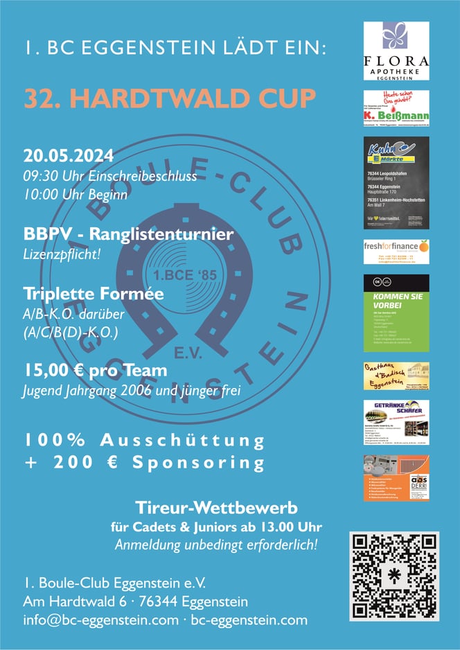 Am Pfingstmontag fanden 81 Tripletten bei herrlichem Boulewetter den Weg zum 31. Hardtwald-Cup des 1. BC Eggenstein.