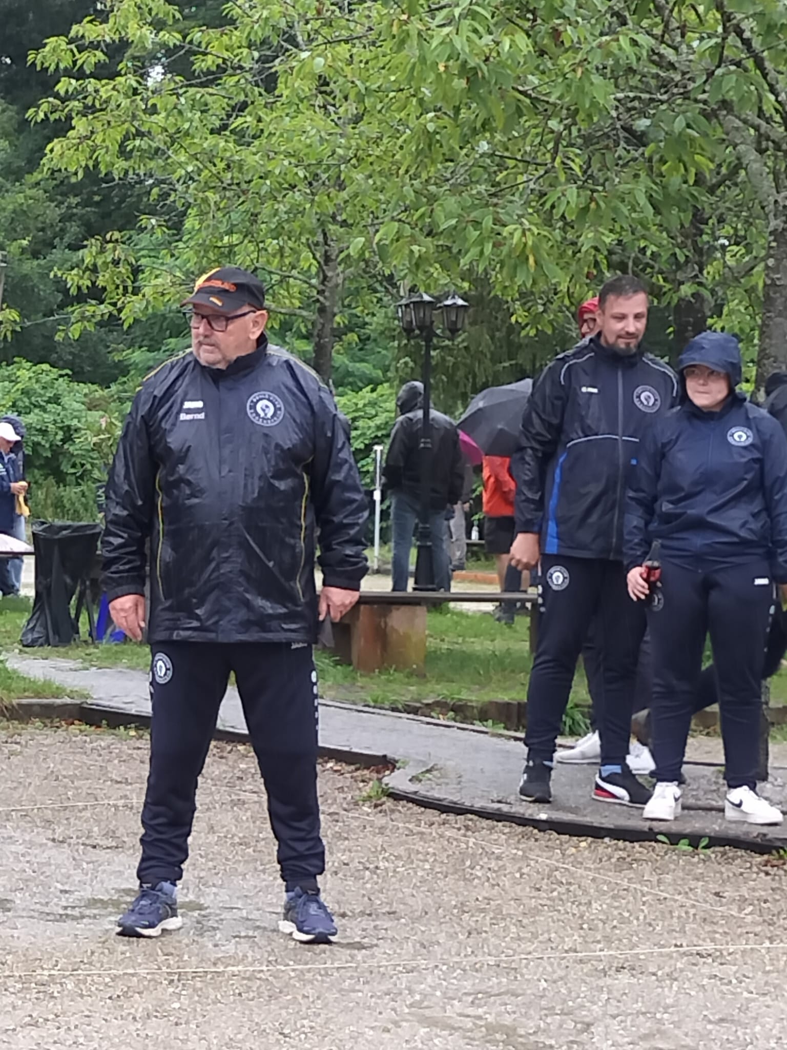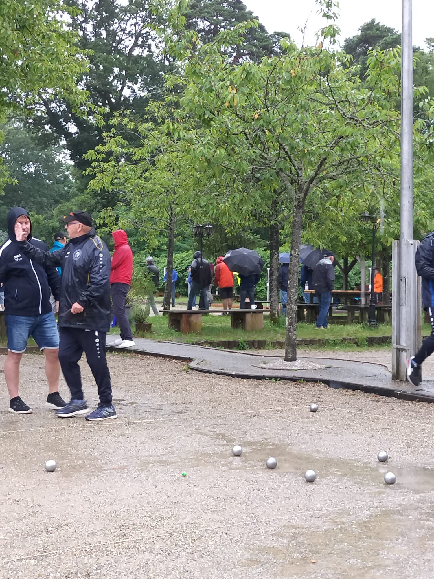 Im 2. Spiel mussten wir nun im strömenden Regen gegen den starken Tabellenführer aus Blankenloch spielen. In den beiden Tripletten gewann man eins mit 13:3 und das andere ging verloren mit 13:0 Nun noch hieß es 2 Doubletten gewinnen, damit es sicher reicht in der Liga zu bleiben. Eine Doublette wurde sehr schnell mit 13:0 gewonnen. Bei den andern 2 wurde gekämpft aber leider wurden beide verloren.