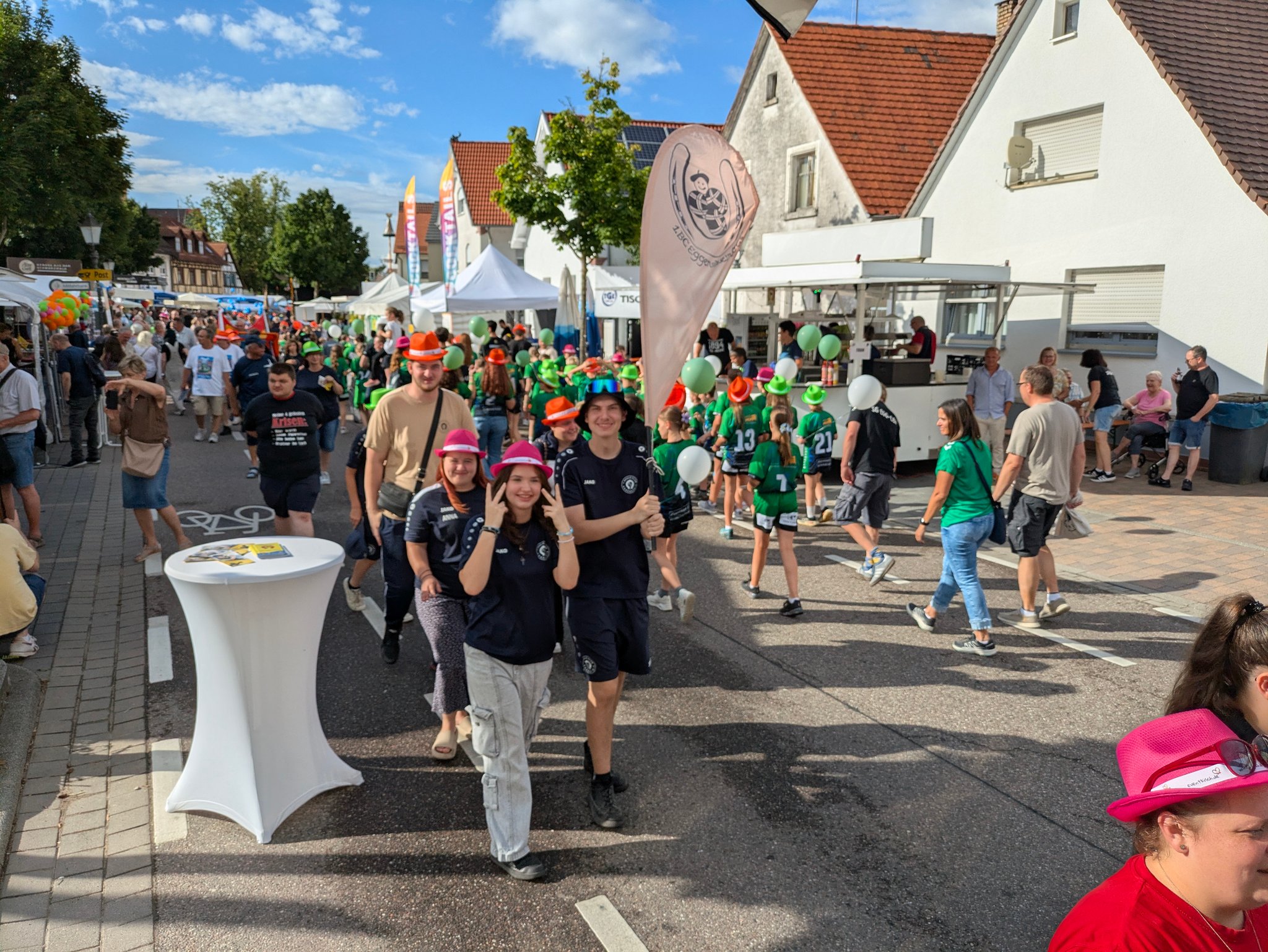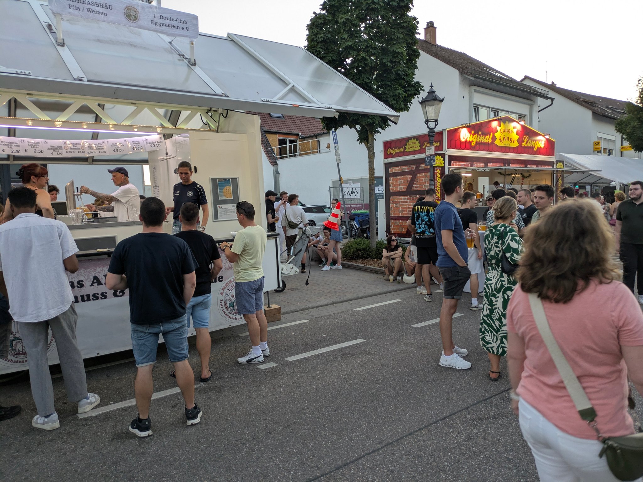 Am Wochenende 27.06-29.06 fand das 23. Strassenfest in Eggenstein statt. Dieses mal von Freitag bis Sonntag. Was eine tolle Idee war. Bei bestem Wetter hatten wir 3 wundervolle und Arbeitsreiche Tage. Wir konnten gar nicht schauen wie schnell unsere Steaks, Currywürste vom Edeka Kuhn, Andreas-Bräu Bier, Seccoline usw. raus gegangen sind. Auch unsere 2 Teilnahme bei der Spielstrasse war ein voller Erfolg und wir konnten Groß und Klein unseren Sport näherbringen. Danke an alle Gäste für die tolle Atmosphäre, unsern Helfer für die viel Arbeit und Unsere Hofeltern das wir es dort machen durften.