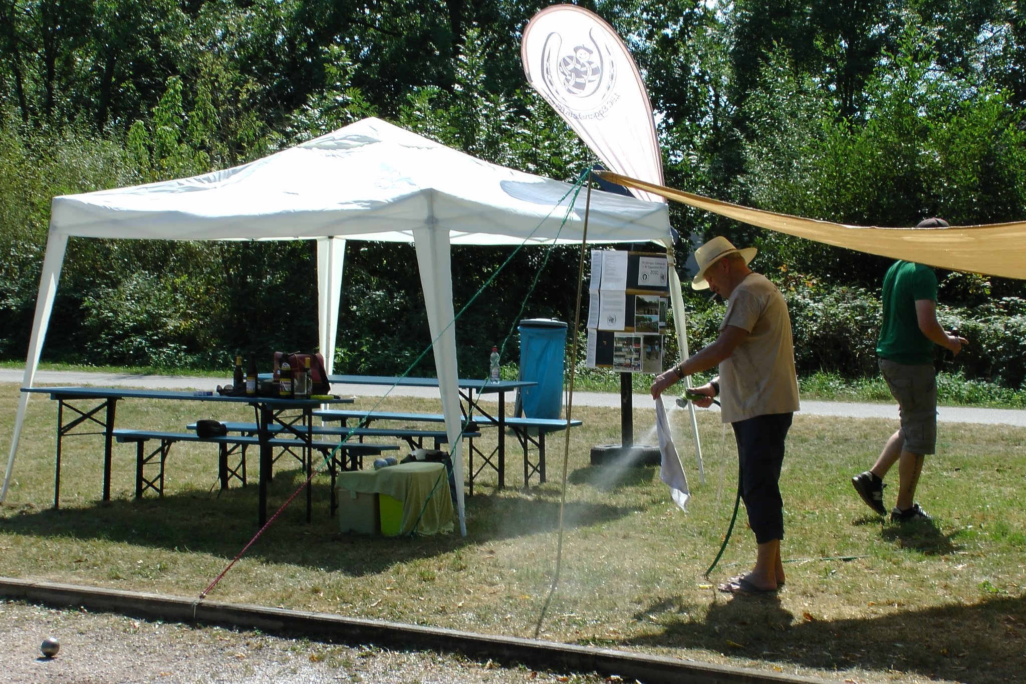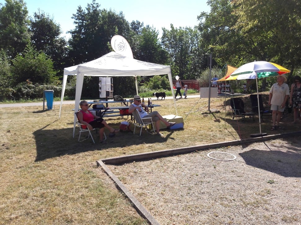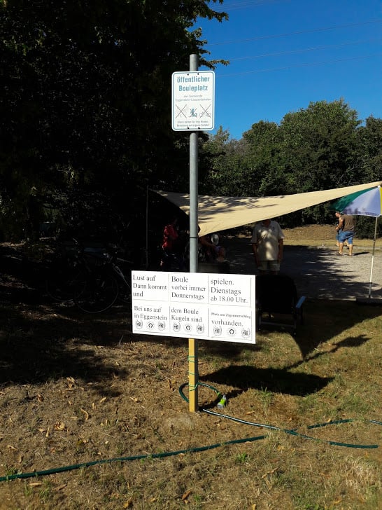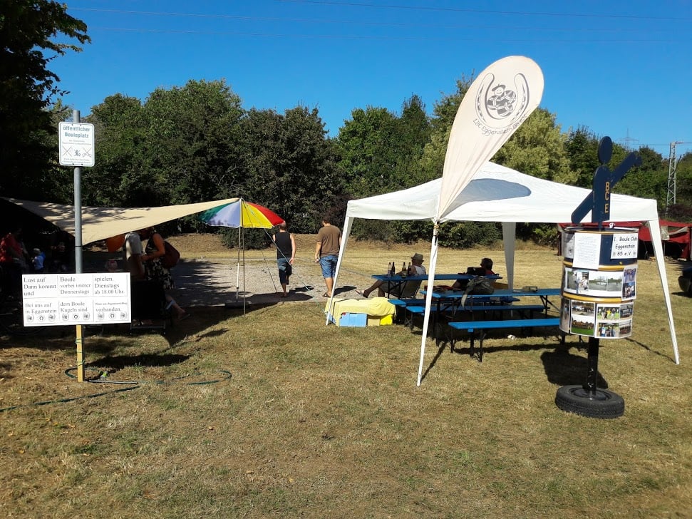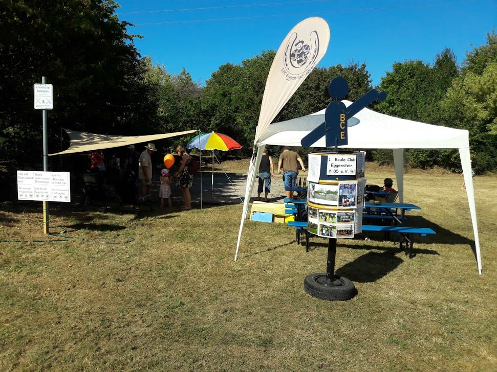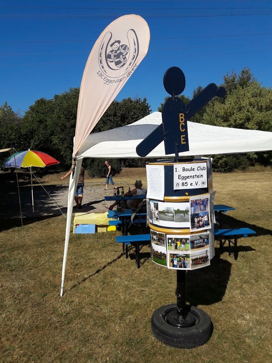 Beim Kinderfest am 27. und 28.8. war auch wieder der BC Eggenstein vertreten, um Klein und Groß das französische Kugelspiel näherzubringen. Am öffentlichen Bouleplatz direkt an der 2. Brücke haben es sich die Boulespieler des BC Eggenstein gemütlich eingerichtet. Es gab Informationen zum Verein wie auch zum Sport und alle die wollten, konnten das ganze praktisch unter fachmännischer Anleitung ausprobieren, denn genug Kugeln standen auch zur Verfügung. Vor allem viele Kinder aber auch der ein oder andere Erwachsene traute sich an die Kugeln, und man konnte hier und da auch erste Erfolge beim Legen wie auch Schießen sehen. Bei sehr heißen Temperaturen kamen ausnahmsweise auch die Boulespieler ins Schwitzen, so dass eine kühle Dusche zwischendrin auch mal sein musste. Spaß hat es allen wieder gemacht und so freuen wir uns aufs nächste Kinderfest.