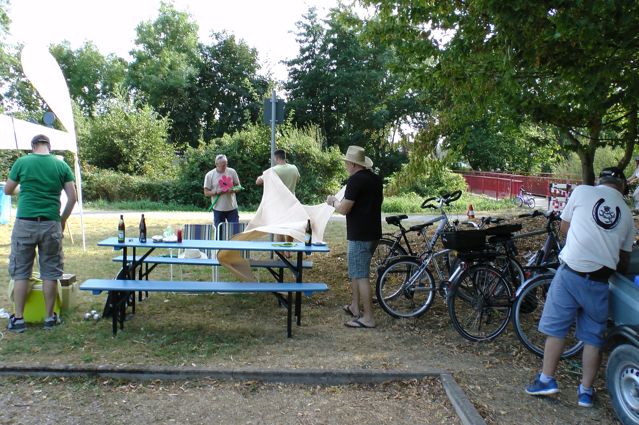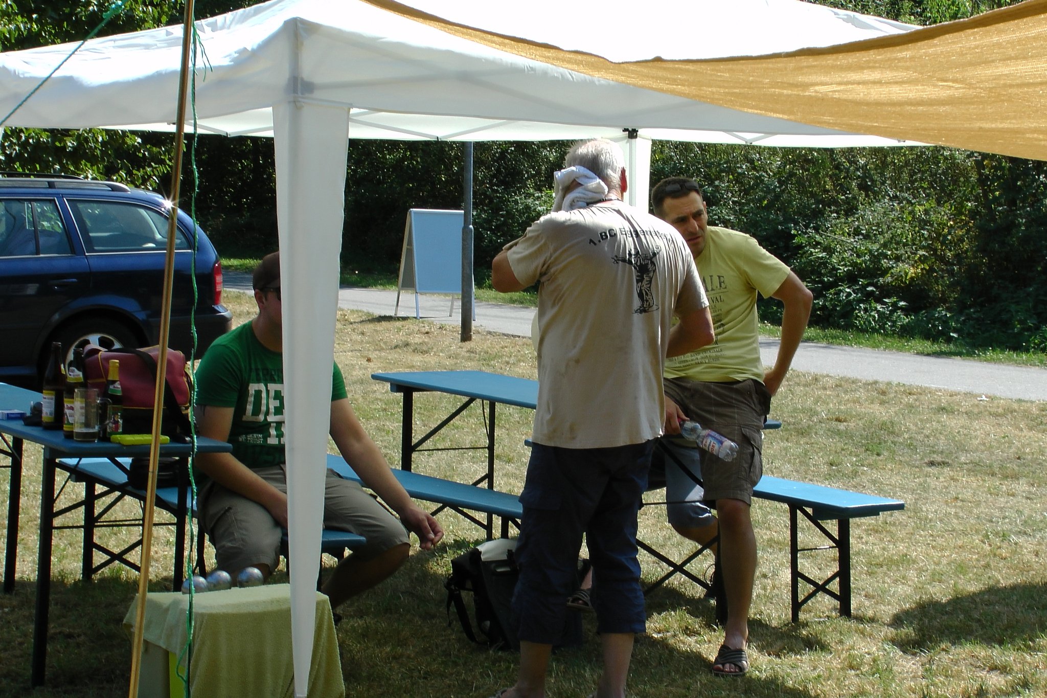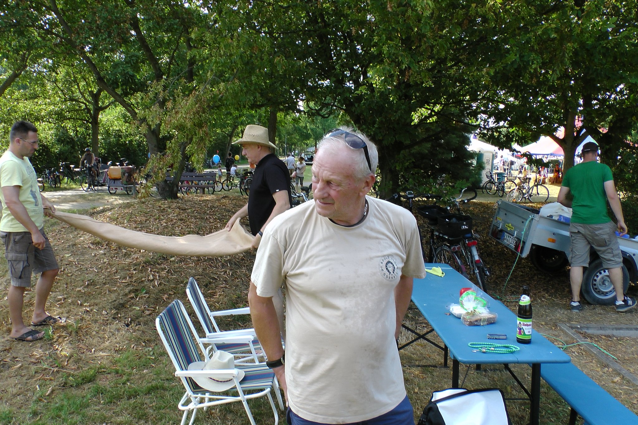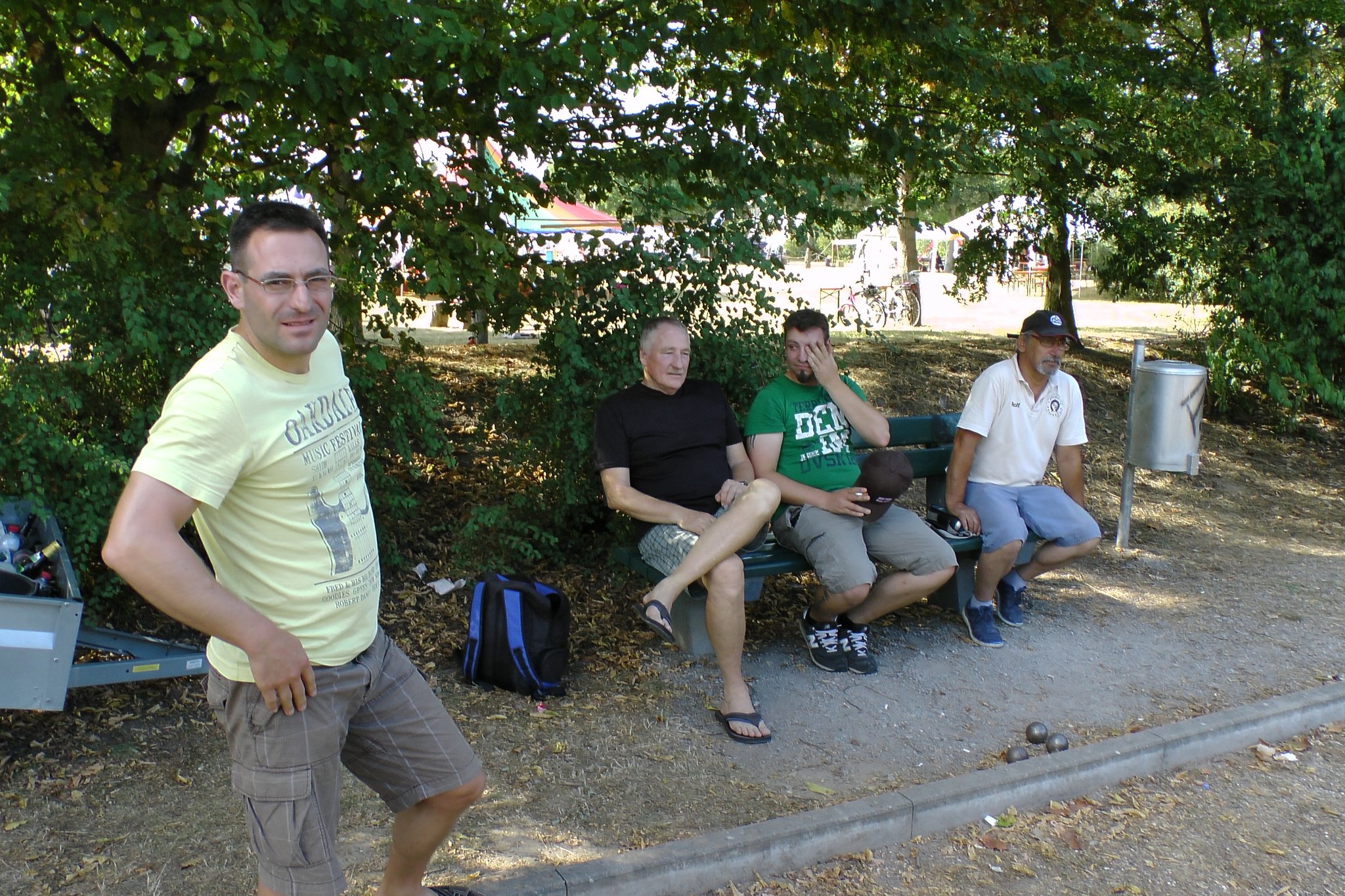 Beim Kinderfest am 27. und 28.8. war auch wieder der BC Eggenstein vertreten, um Klein und Groß das französische Kugelspiel näherzubringen. Am öffentlichen Bouleplatz direkt an der 2. Brücke haben es sich die Boulespieler des BC Eggenstein gemütlich eingerichtet. Es gab Informationen zum Verein wie auch zum Sport und alle die wollten, konnten das ganze praktisch unter fachmännischer Anleitung ausprobieren, denn genug Kugeln standen auch zur Verfügung. Vor allem viele Kinder aber auch der ein oder andere Erwachsene traute sich an die Kugeln, und man konnte hier und da auch erste Erfolge beim Legen wie auch Schießen sehen. Bei sehr heißen Temperaturen kamen ausnahmsweise auch die Boulespieler ins Schwitzen, so dass eine kühle Dusche zwischendrin auch mal sein musste. Spaß hat es allen wieder gemacht und so freuen wir uns aufs nächste Kinderfest.