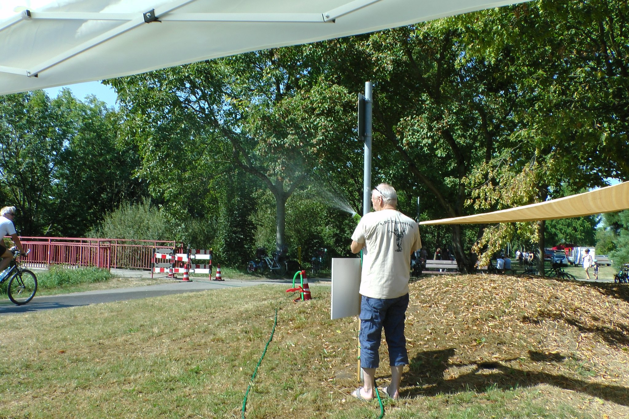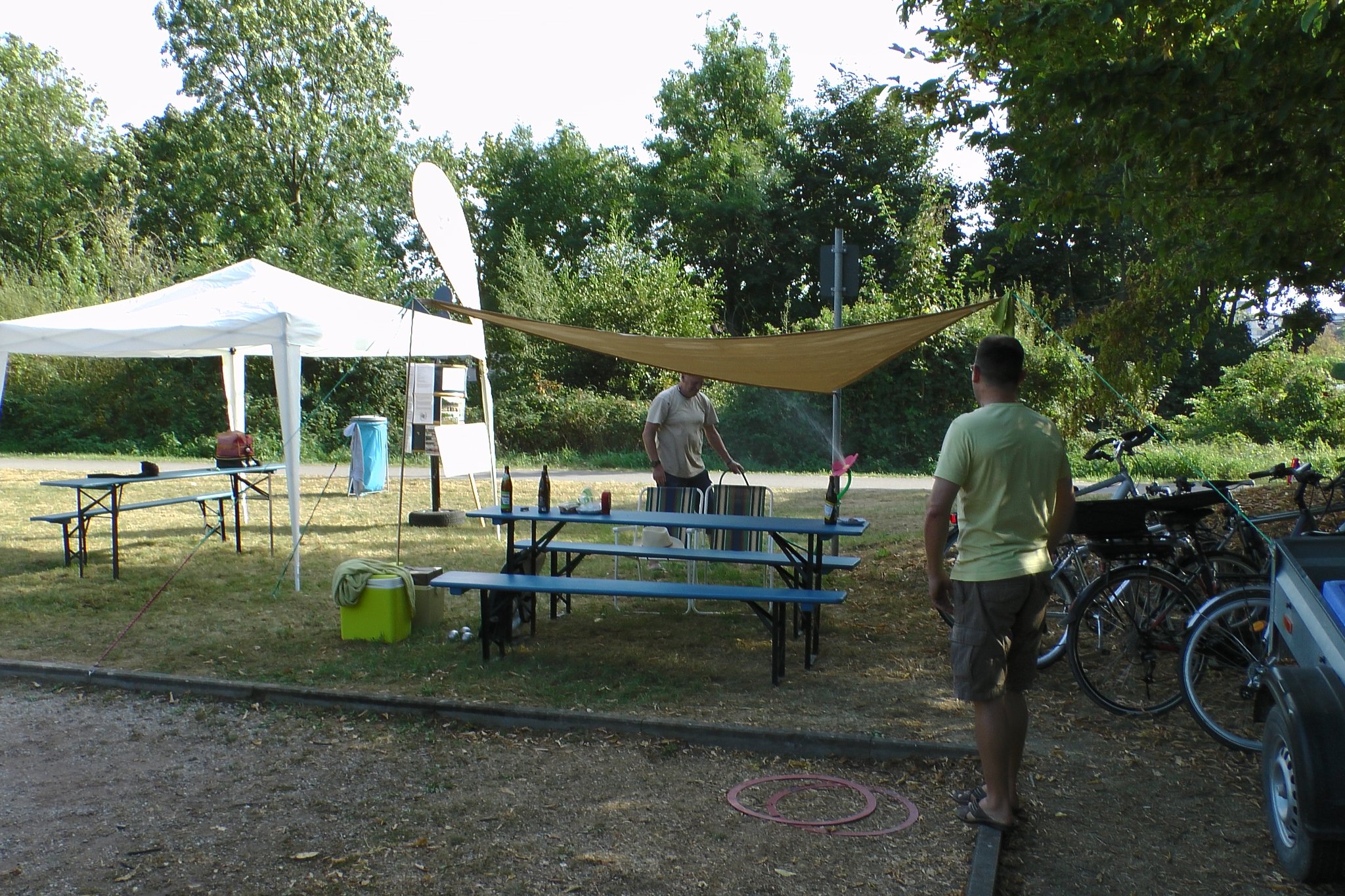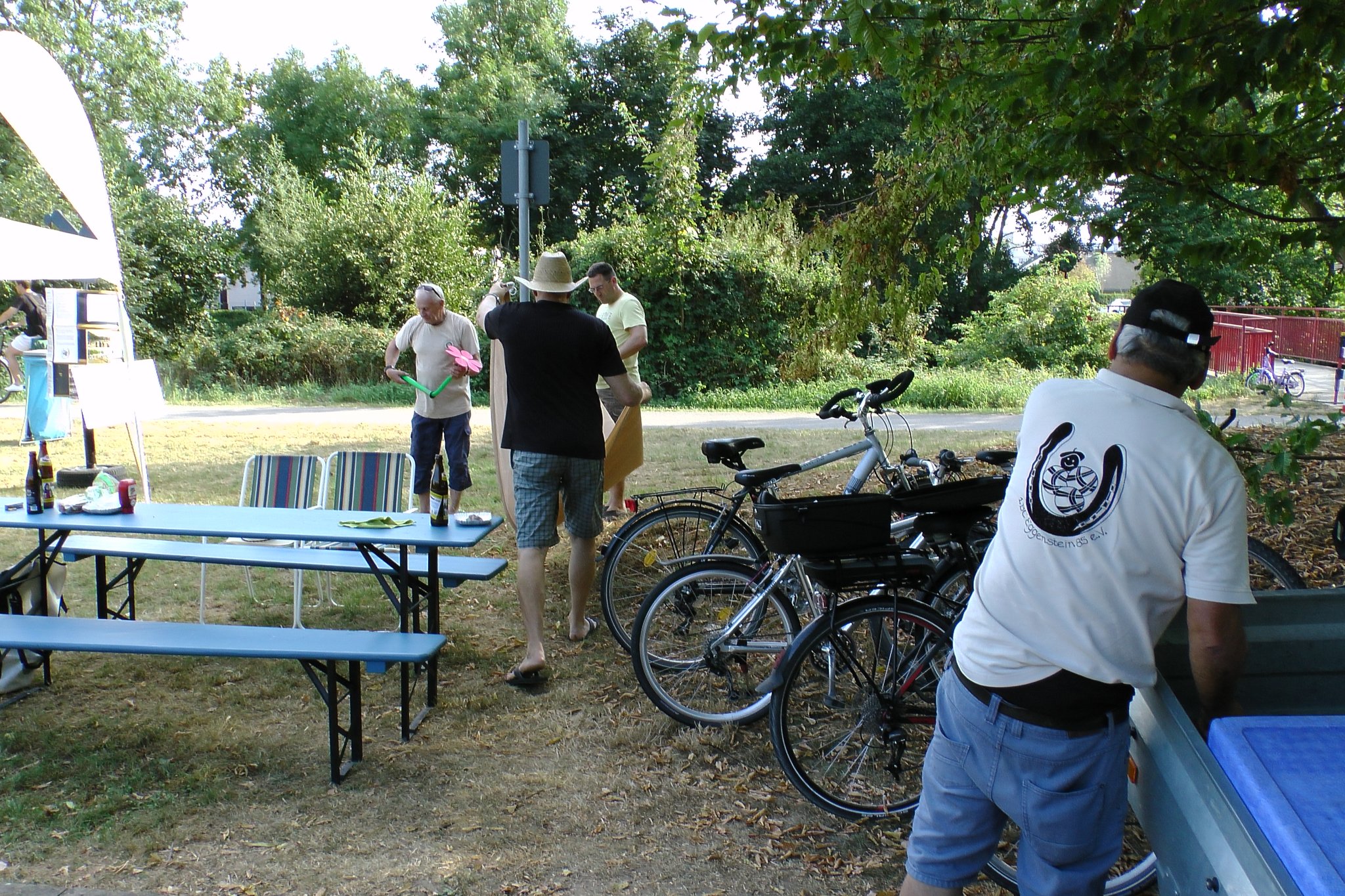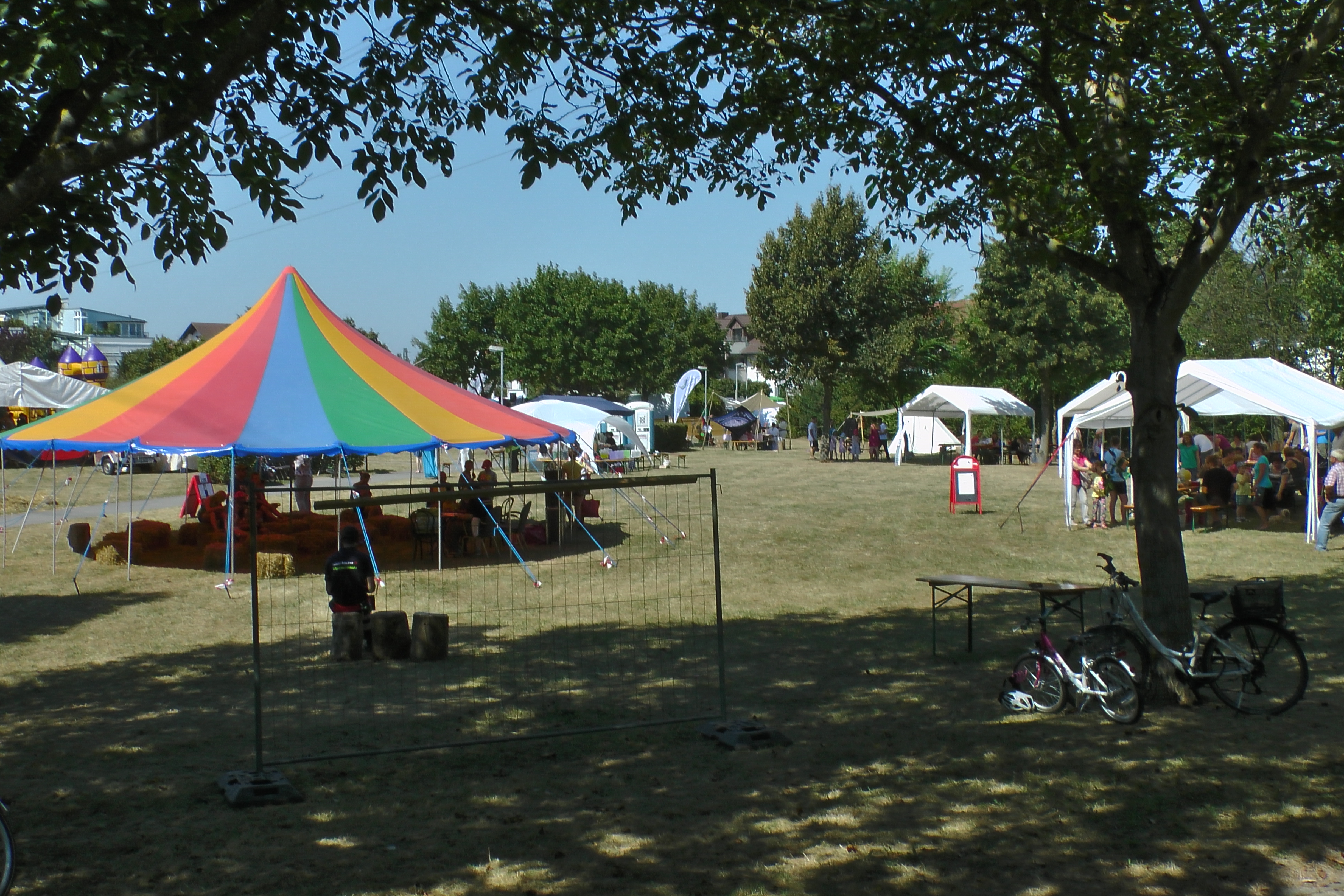 Beim Kinderfest am 27. und 28.8. war auch wieder der BC Eggenstein vertreten, um Klein und Groß das französische Kugelspiel näherzubringen. Am öffentlichen Bouleplatz direkt an der 2. Brücke haben es sich die Boulespieler des BC Eggenstein gemütlich eingerichtet. Es gab Informationen zum Verein wie auch zum Sport und alle die wollten, konnten das ganze praktisch unter fachmännischer Anleitung ausprobieren, denn genug Kugeln standen auch zur Verfügung. Vor allem viele Kinder aber auch der ein oder andere Erwachsene traute sich an die Kugeln, und man konnte hier und da auch erste Erfolge beim Legen wie auch Schießen sehen. Bei sehr heißen Temperaturen kamen ausnahmsweise auch die Boulespieler ins Schwitzen, so dass eine kühle Dusche zwischendrin auch mal sein musste. Spaß hat es allen wieder gemacht und so freuen wir uns aufs nächste Kinderfest.