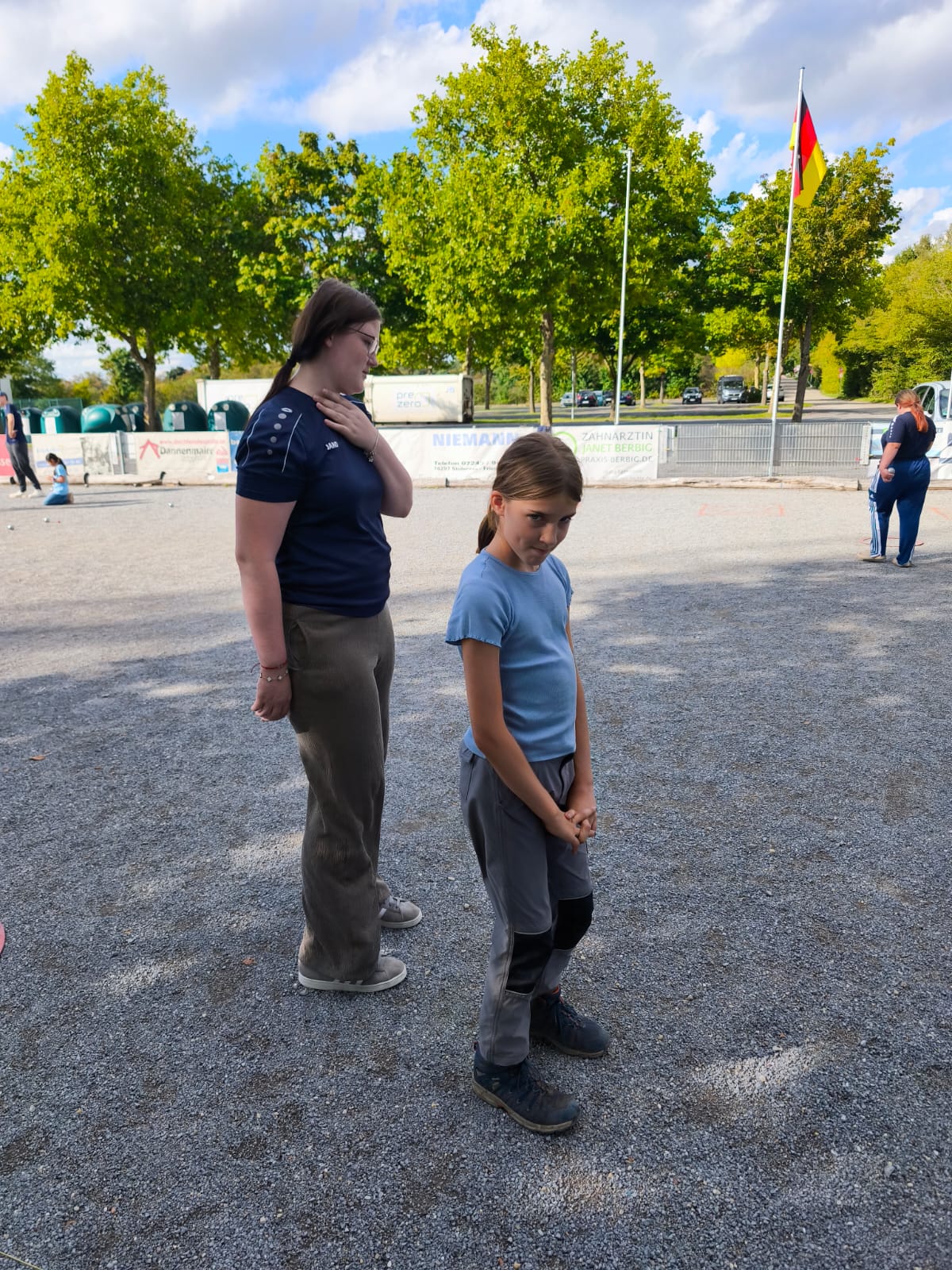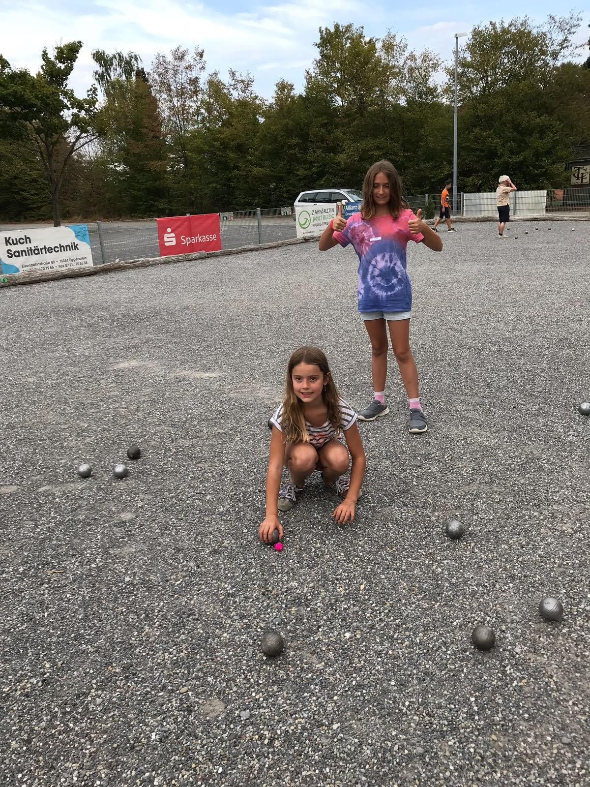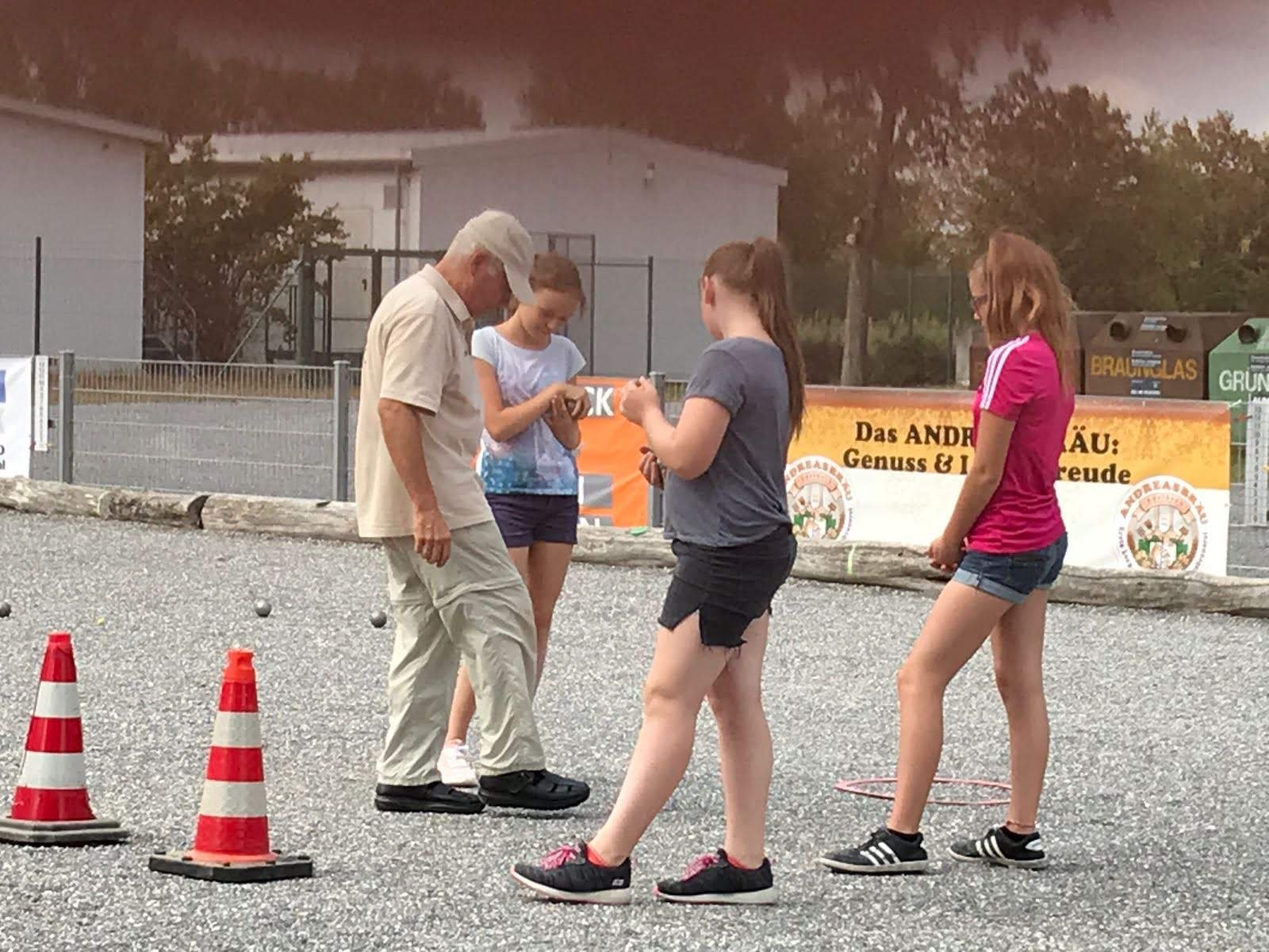 Jugendspielern. Bevor es richtig los ging zeigten Udo und Thomas anhand von Tennisbällen 🥎wie man mit "echten Boules" umgeht, und es dauerte nicht lange bis die ersten Partien gespielt wurden.