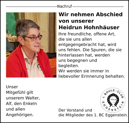 Wir nehmen Abschied von unserer Heidrun Hohnhäuser.